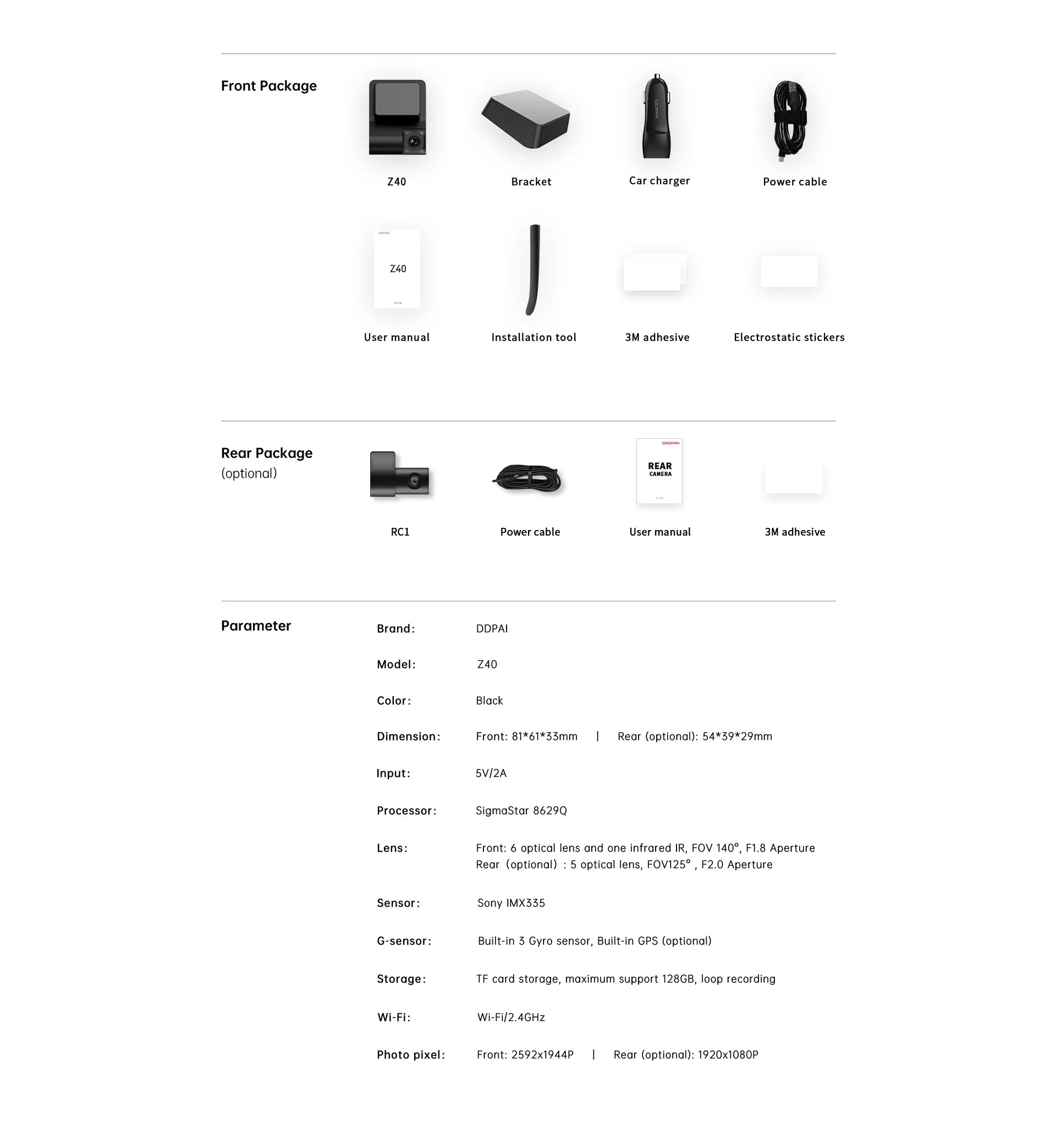 DDPAI Z40 Dash Cam Car Camera Recorder Sony IMX335 1944P HD Video GPS Tracking 360 Rotation Wifi DVR 24H Parking Protector