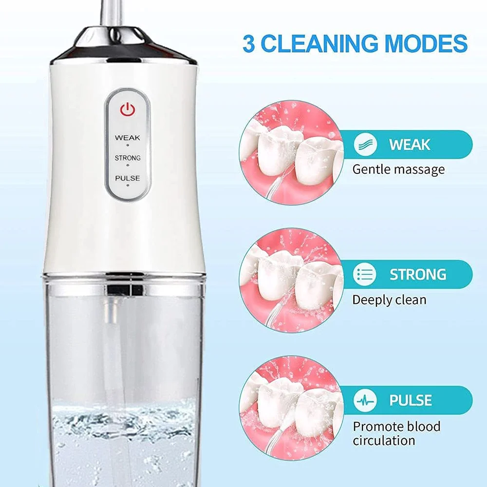 Dental Floss, Portable Cordless Oral Irrigator Cleaning 3 Modes, Waterproof Rechargeable Dental Cleaner, with 4 Nozzles