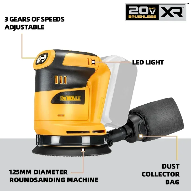 Dewalt 125mm Brushless Motor Cordless Orbital Sander Grinder Wood Metal Waxing Polishing Grinding Machine for Dewalt 20V Battery