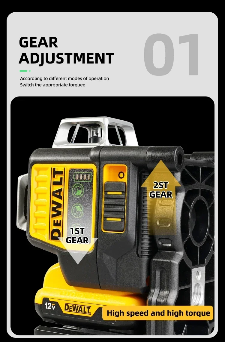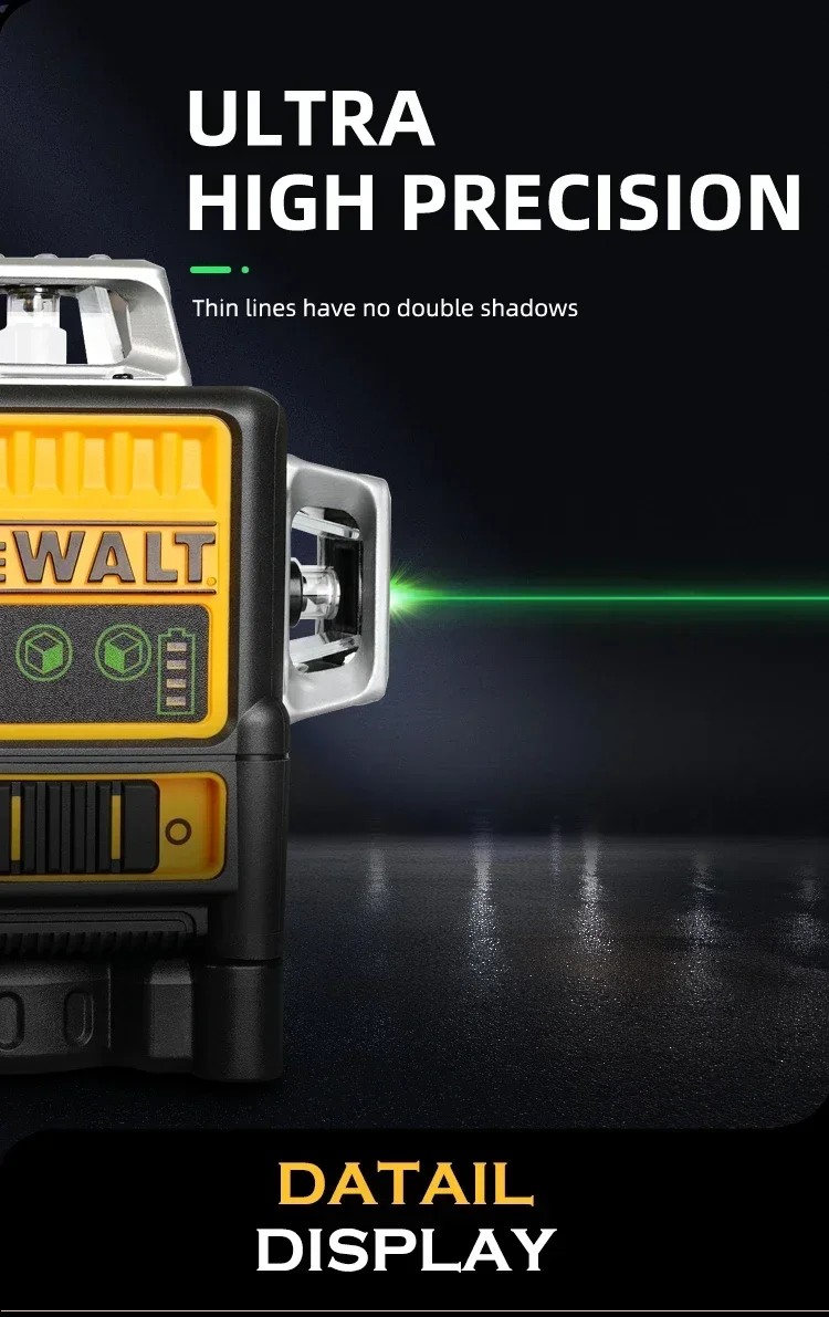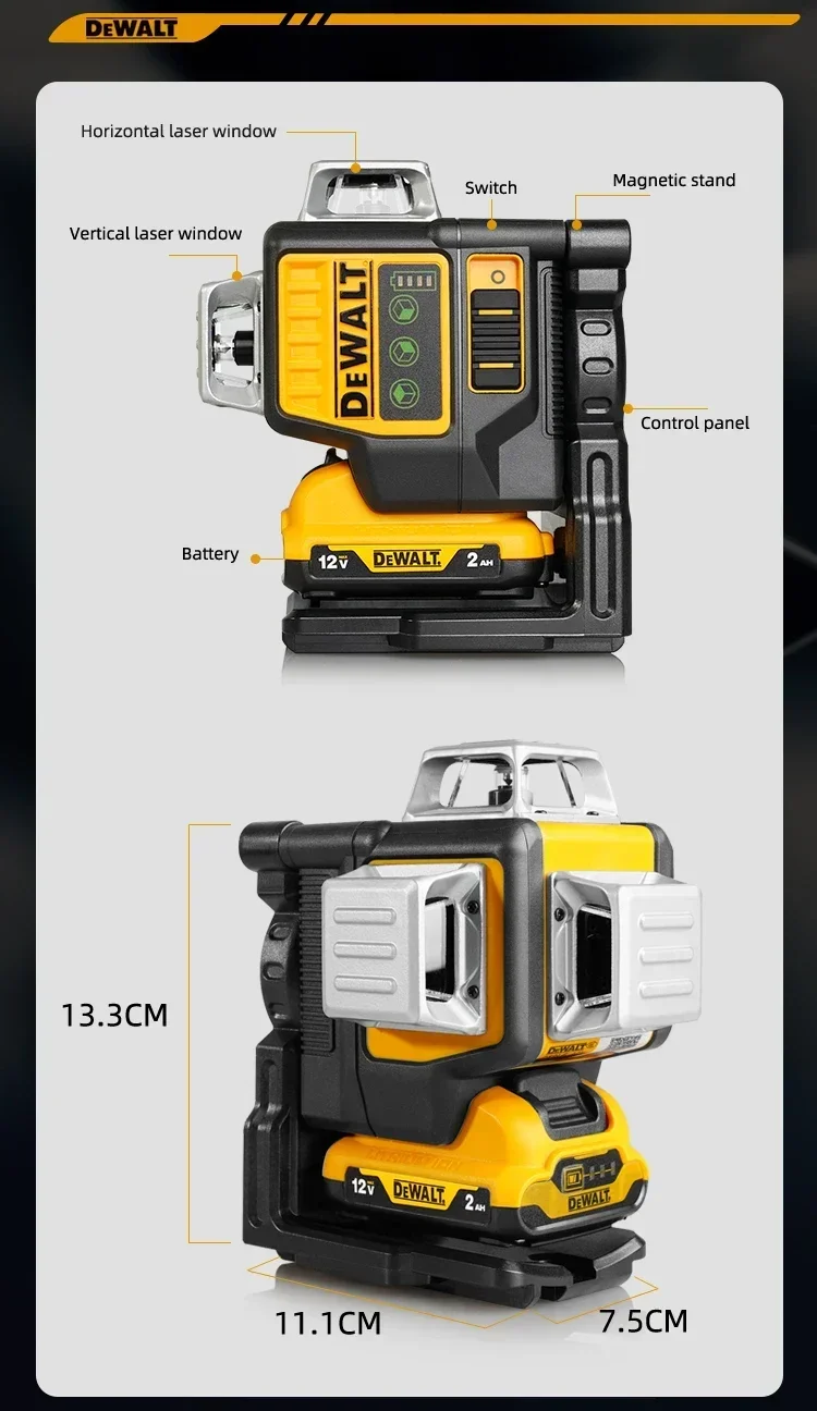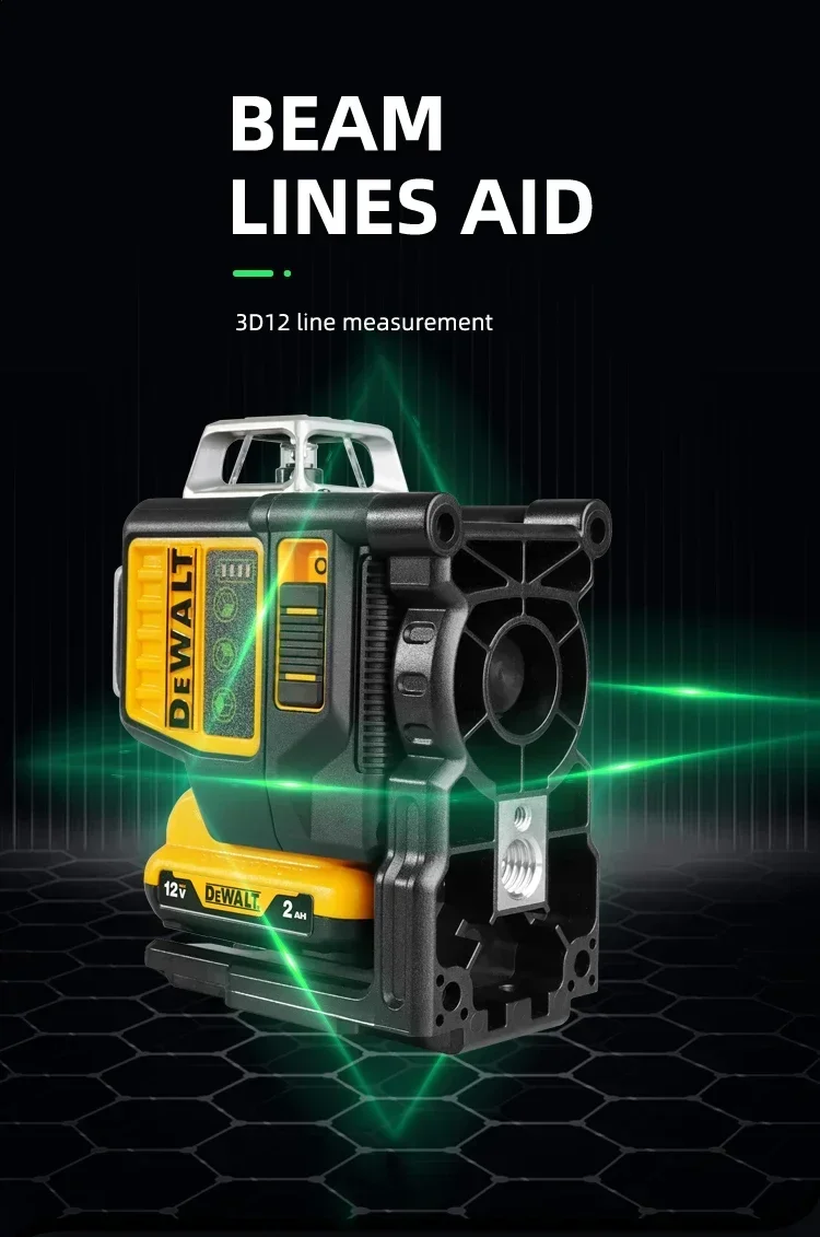 Dewalt DW089LG 3 Sides*360 Degree Vertical 12V Lithium Battery 12 Lines Laser Level Horizontal Green Light Level Meter Outdoor