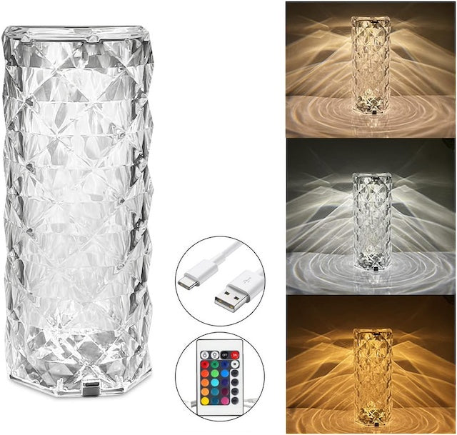 Diamond Table Lamp, Crystal Lamp Romantic LED Rose Diamond Table Lamp, 16 Color Changing RGB Night Light Remote & Touch Control Rechargeable Lamp