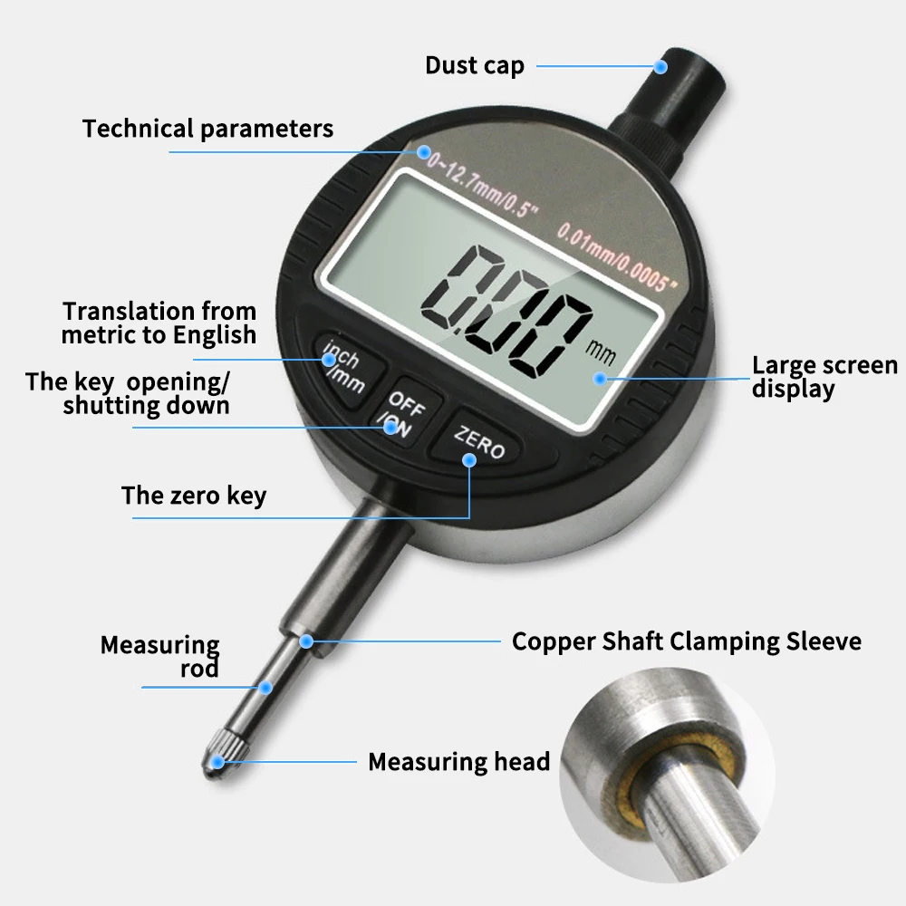 Digital Dial Indicator 0-12.7mm/0.5'' 0.01mm with Mini Magnetic Base Holder Adjustable Universal Gauge Caliper Measuring Tools