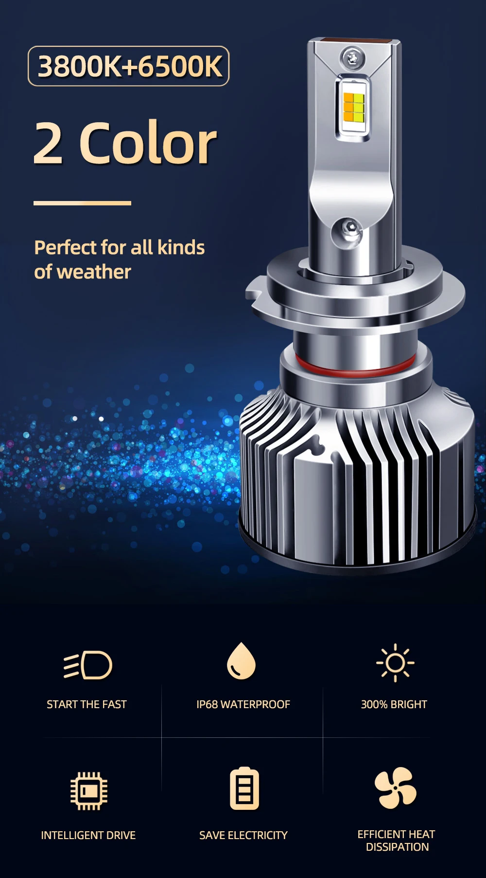 DiReal 2PCS Auto H7 Led Car Light H1 H8 H9 H11 9005 9006 9012 H4 LED 2colors Changing Headlight Fog LED Light 3000K/3800K 6500K
