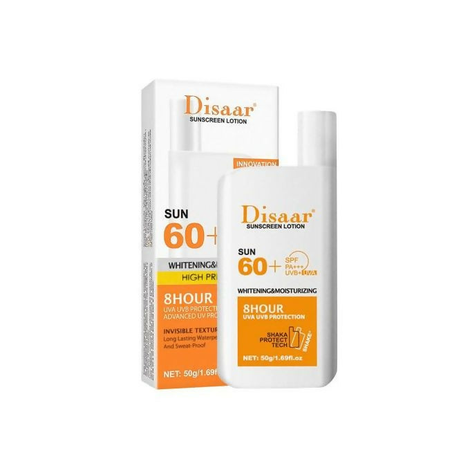 - Disaar Whitening & Moisturizing SPF60 Sunscreen Lotion offers robust protection with SPF60, shielding your skin from harmful UVA and UVB rays.