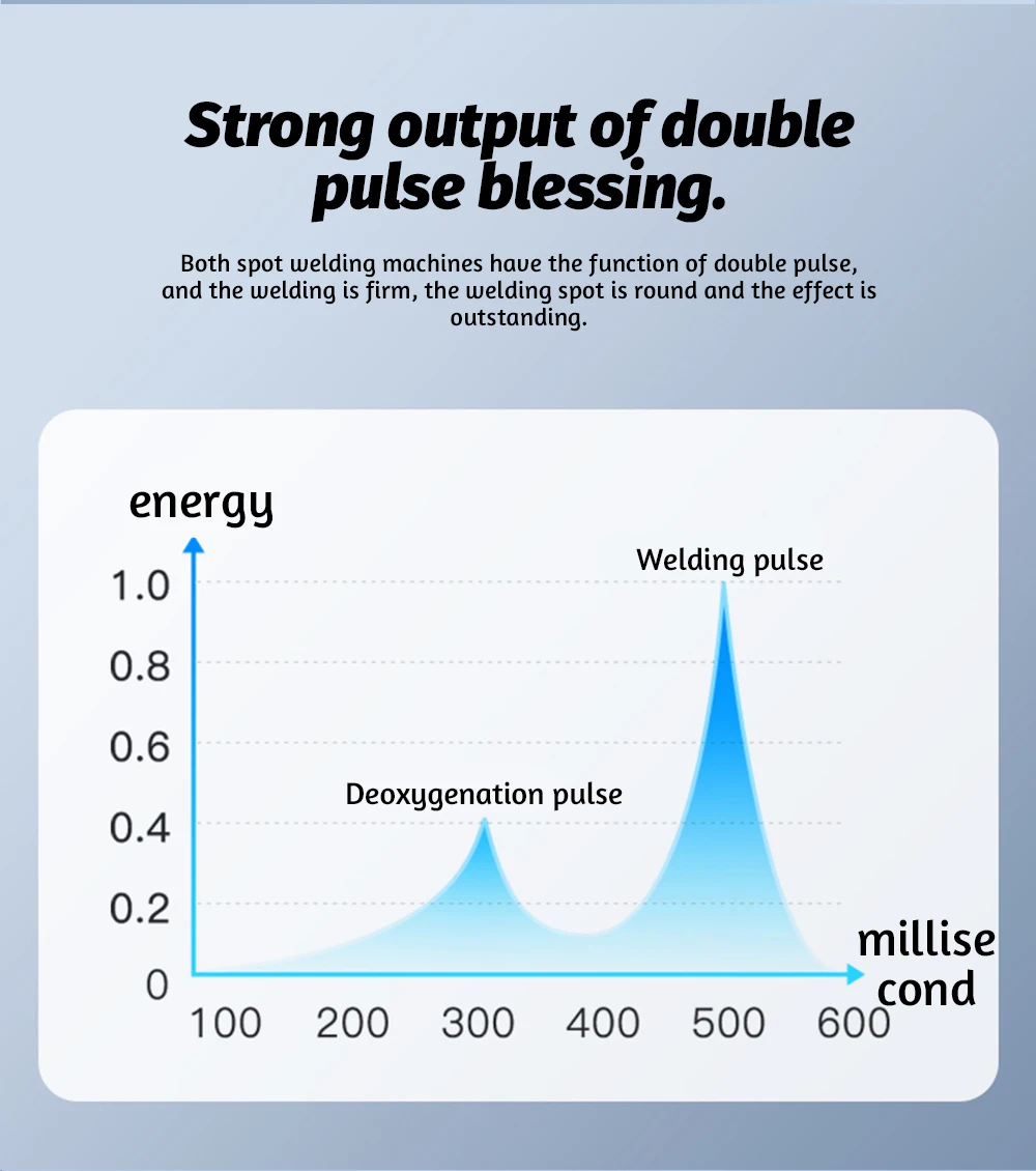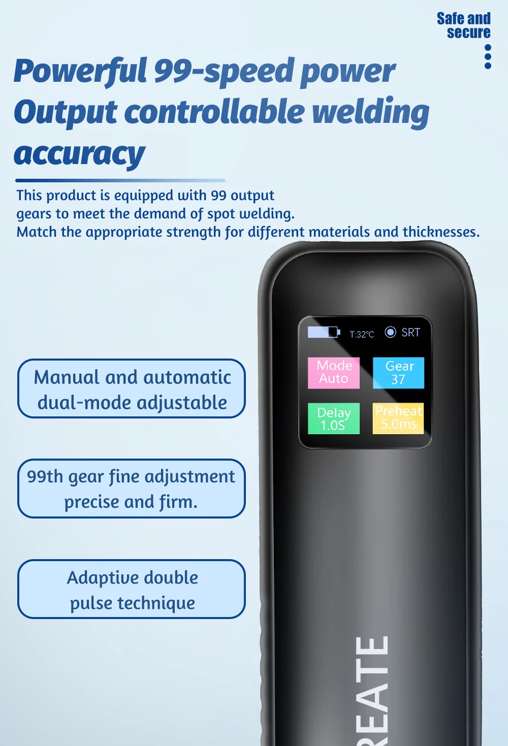 3. Easy to use - There are only 2 buttons, and the buttons of our spot welding machine are labeled, making them easy to use. The battery spot welder does not need to leave the palm of our hands. Press and hold the side power switch button with your middle finger for 2 seconds, press and hold the top gear adjustment button once with your index finger, and then hold it for 2 seconds to adjust automatic or manual mode.