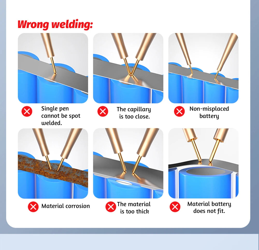 1. No spot welding pen required - No need for a spot welding pen when you go out or at home. The handheld spot welder does not require an additional spot welding pen and is convenient to carry with you wherever you go. It combines a built-in power supply and a soldering pen into one, making it easy to weld without the need for an external soldering pen.