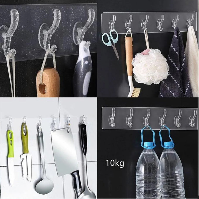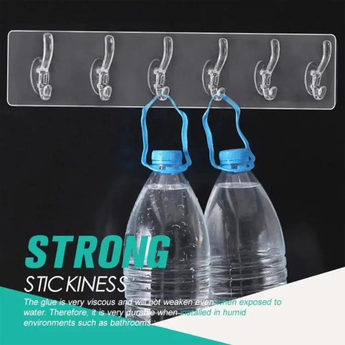 - 6 pc hook Color: Transparents, material: PC material+ Quality stainless steel, PackageQuantity:1 set 6 hooks, Dimensions: 35*6.3*3cm, How to install: 1. Before installing the adhesive hook, please make sure the surface is clean, dry, free from dust and oil, and wipe it dry first. 2. Remove the transparent film on the back of the hook. 3. Paste on any smooth surface and press it tightly to remove any bubbles. 4. Maximum load: 15lbs. It is recommended to leave 24 hours before hanging any item to ensure the product is firm and fixed. Notes: 1. Do not hang overweight, expensive or fragile products. 2. Do not use in high temperature environment (no more than 80 degrees). 3. Applicable to all kinds of smooth surfaces, such as ceramic tile, marble, glass, stainless steel, wood, metal or plastic. 4.Not suitable for wallpaper, paint, painted walls and rough surfaces. How to delete: Heat it with a hair dryer, then slowly remove it from the side without leaving a trace. Adhesive Wall Hooks Sticky Heavy Duty Utilityadhesive wall hook adhesive hooks wall adhesive hooks for hanging adhesive hooks for wall heavy duty self adhesive hooks heavy duty wall hooks for hanging strong wall self