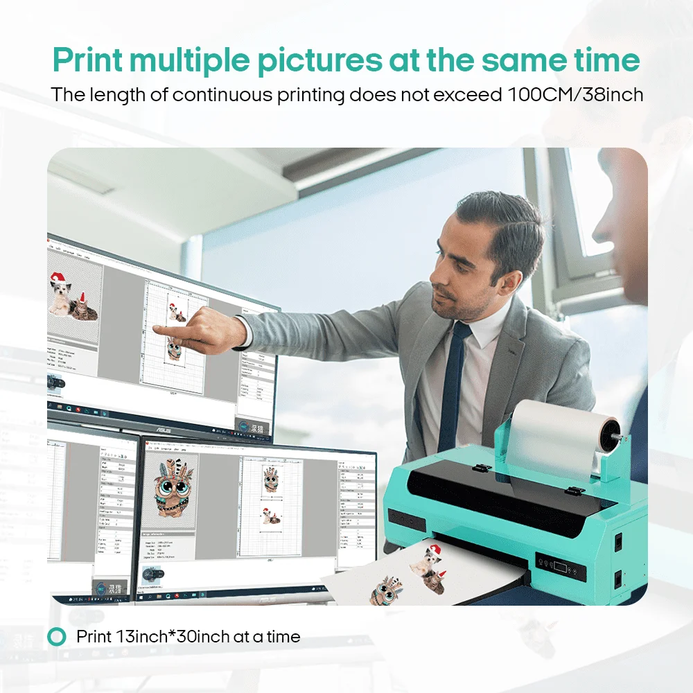 Newest DTF A3+ machine, which supports a maximum transfer film width of 13 inches (33cm), it is wider than the regular A3 size transfer film of 11.8 inches (30cm).