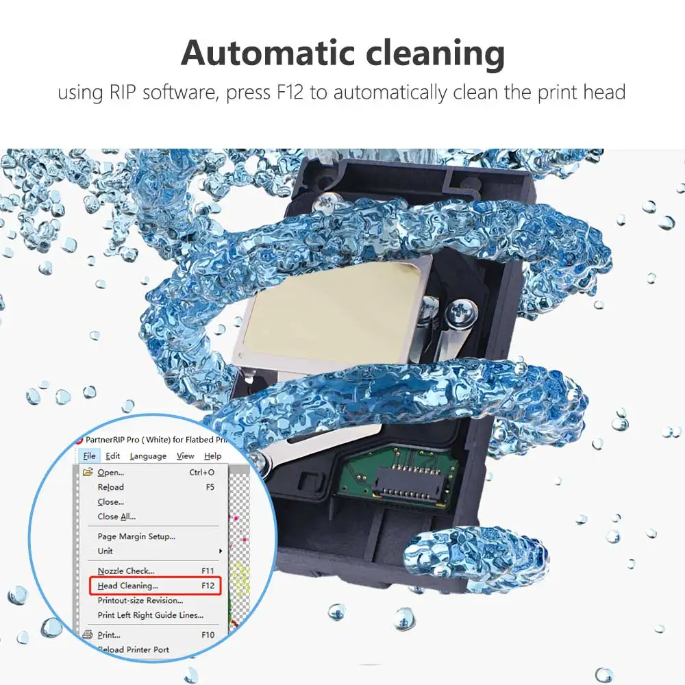 Using RIP software , press F12 to automatically clean the print head