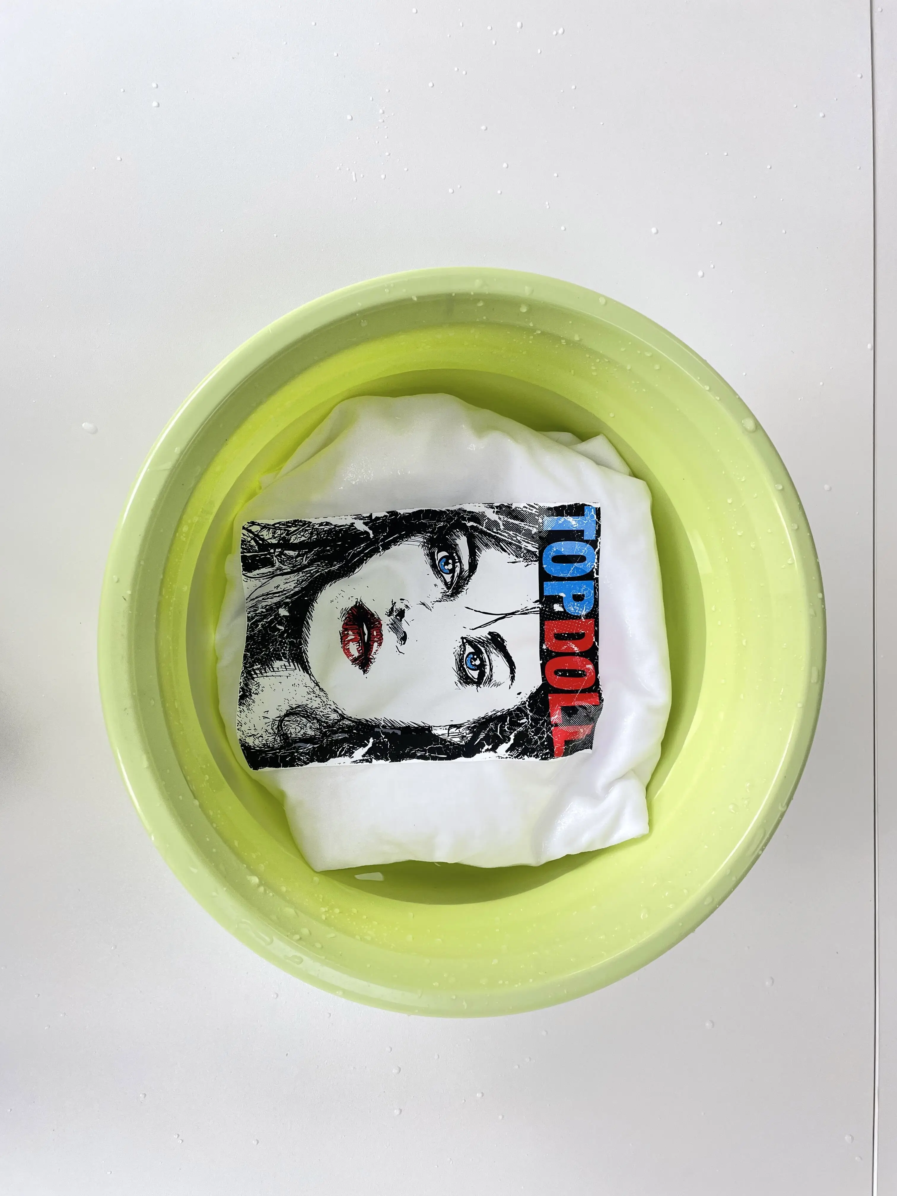 1.Evenly sprayed pretreatment liquid in a dark T-shirt image position