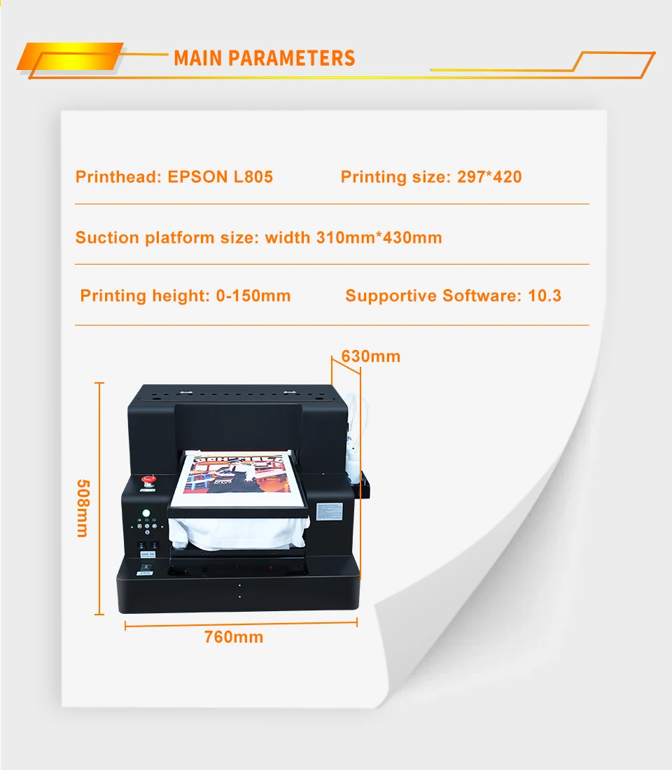 Product name:DTG Printer A3 L805 DTG Flatbed Printer Direct Print to Clothes A3 DTF T-shirt Printing Machine A3 DTG Direct to Garment Printer