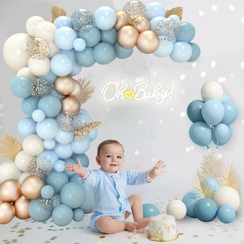 Dusty Blue Balloons Arch Garland Sand White Metallic Gold Dusty Slate Fog Bridal Shower Birthday Party Decorations for Boy