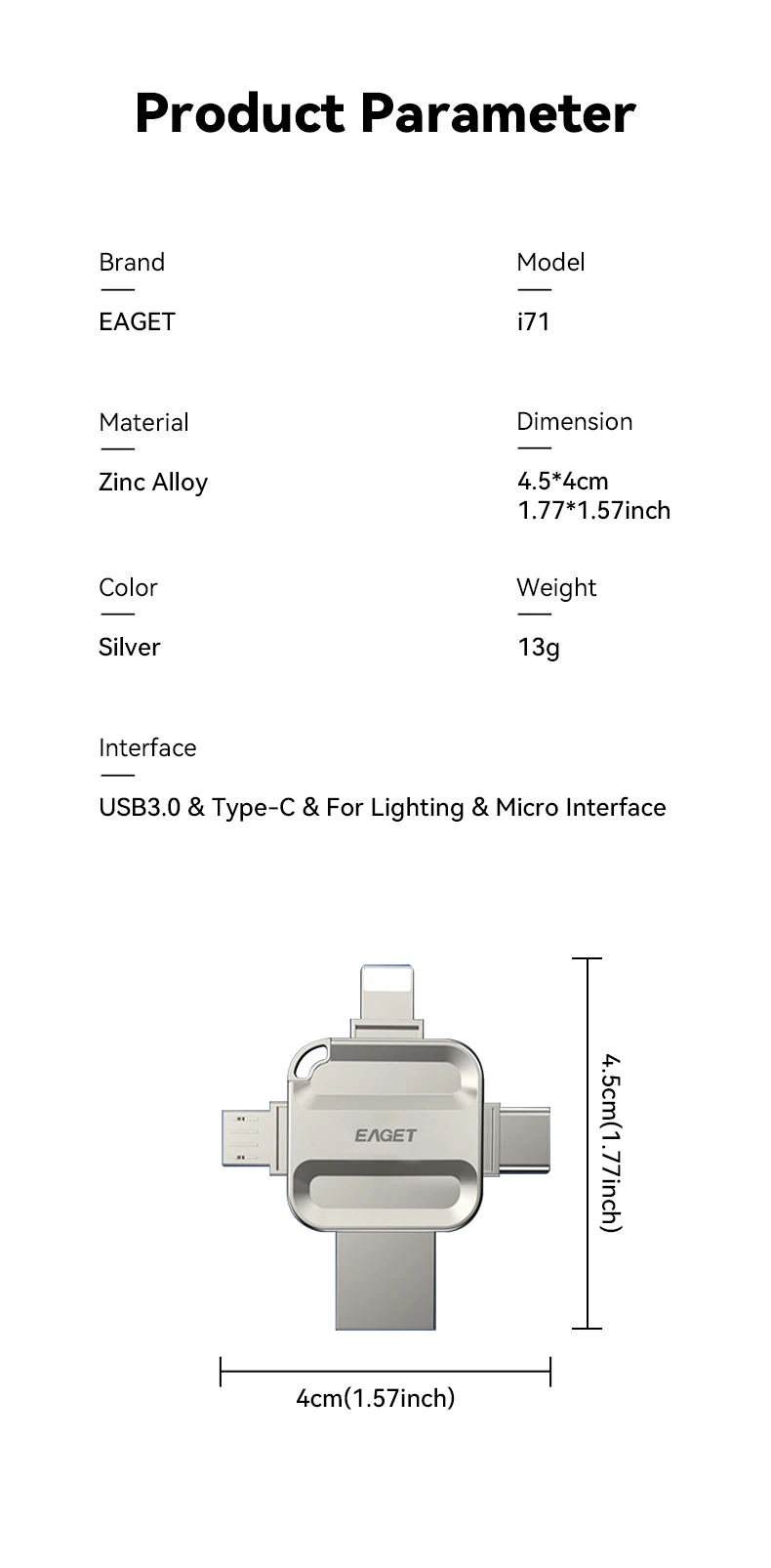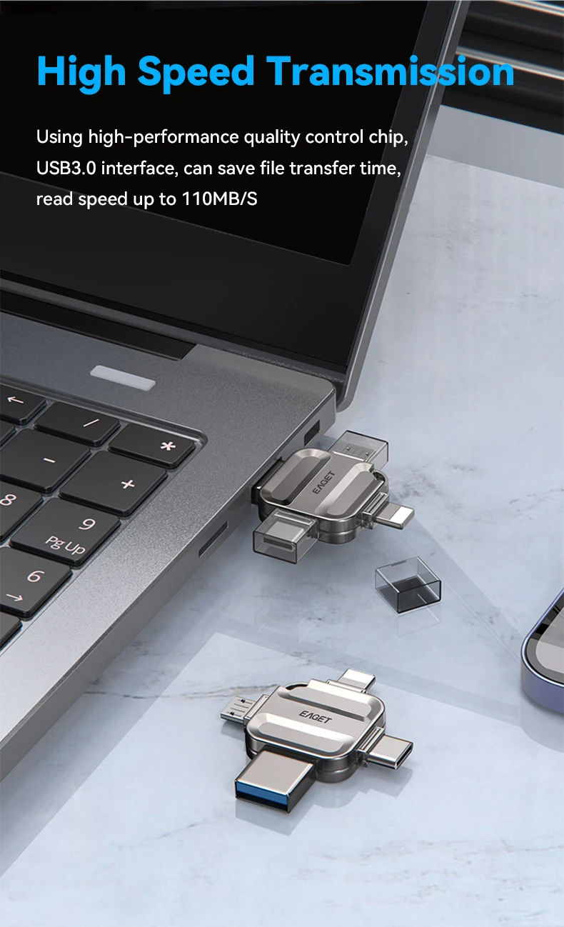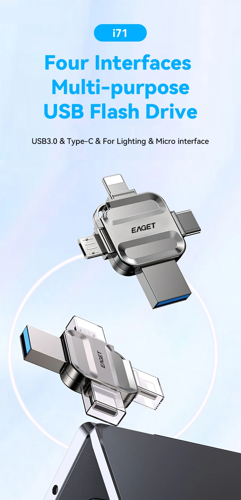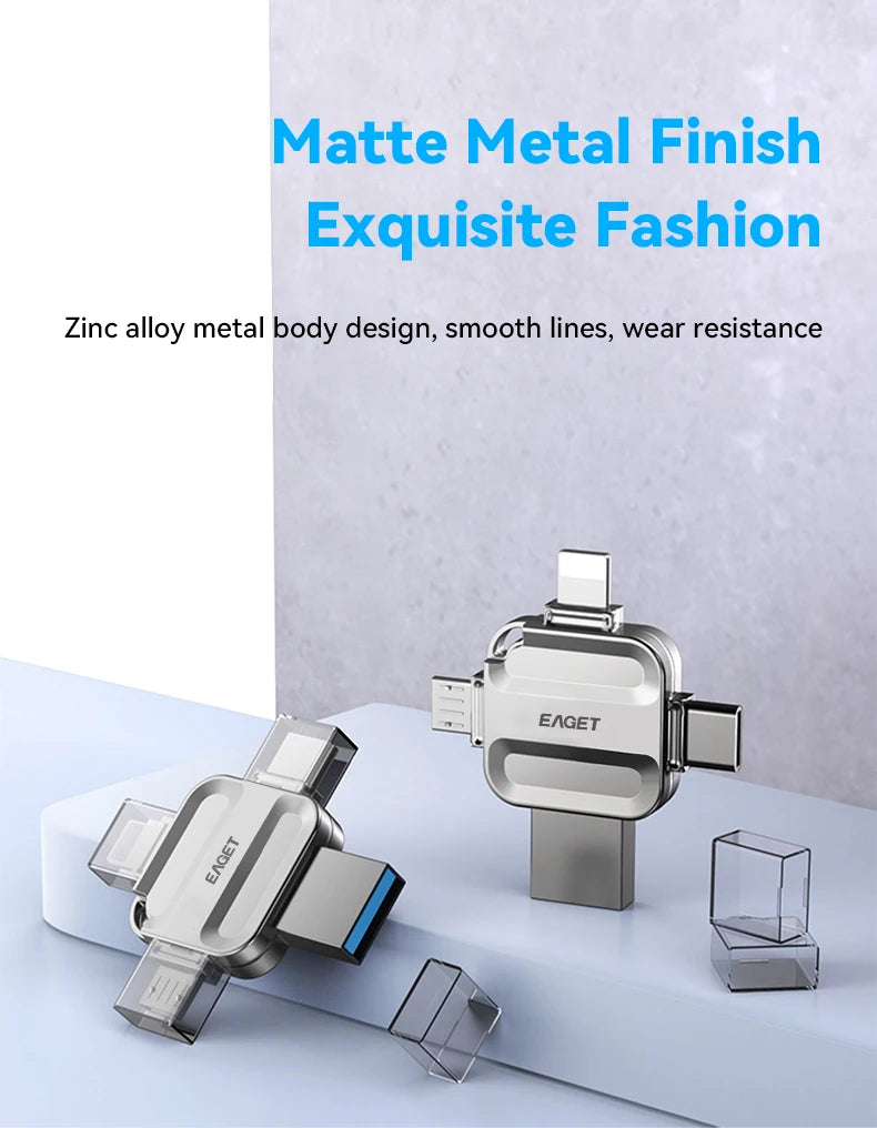 Eaget 4 in 1 Mini USB Flash Drive USB Type C Mirco B Lighting to USB 3.2 Pendrive USB Memories Stick for Phones PC Laptops