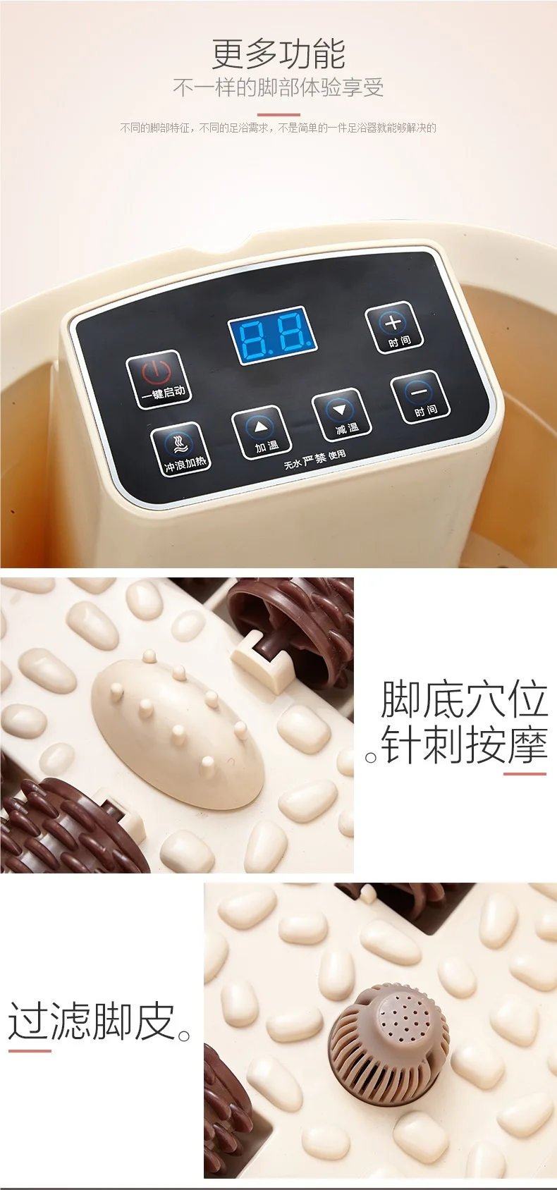 Electric Foot Spa Full-Automatic Massage Home Surfing Foot Bath Vibration Soaking Heater Foot Therapy Machine