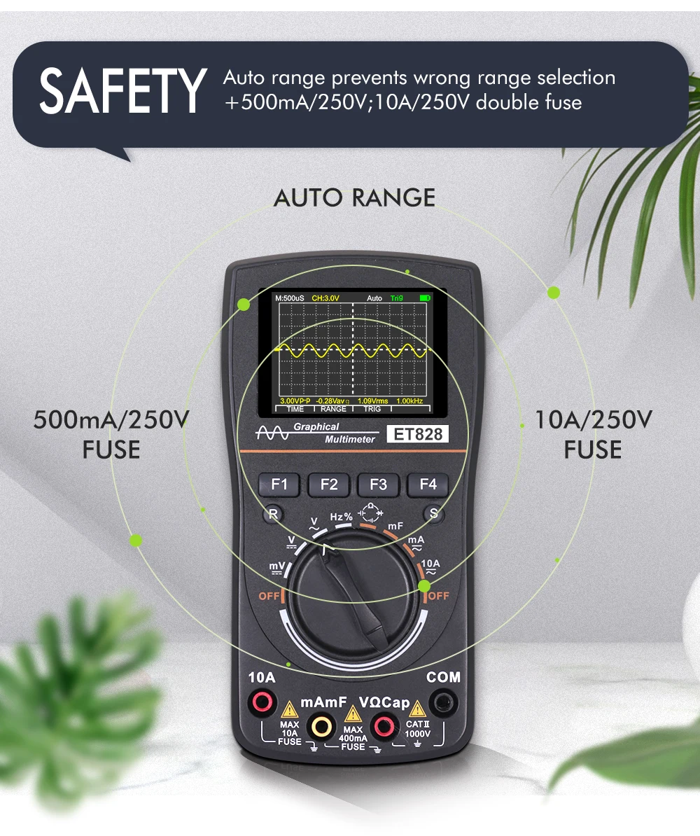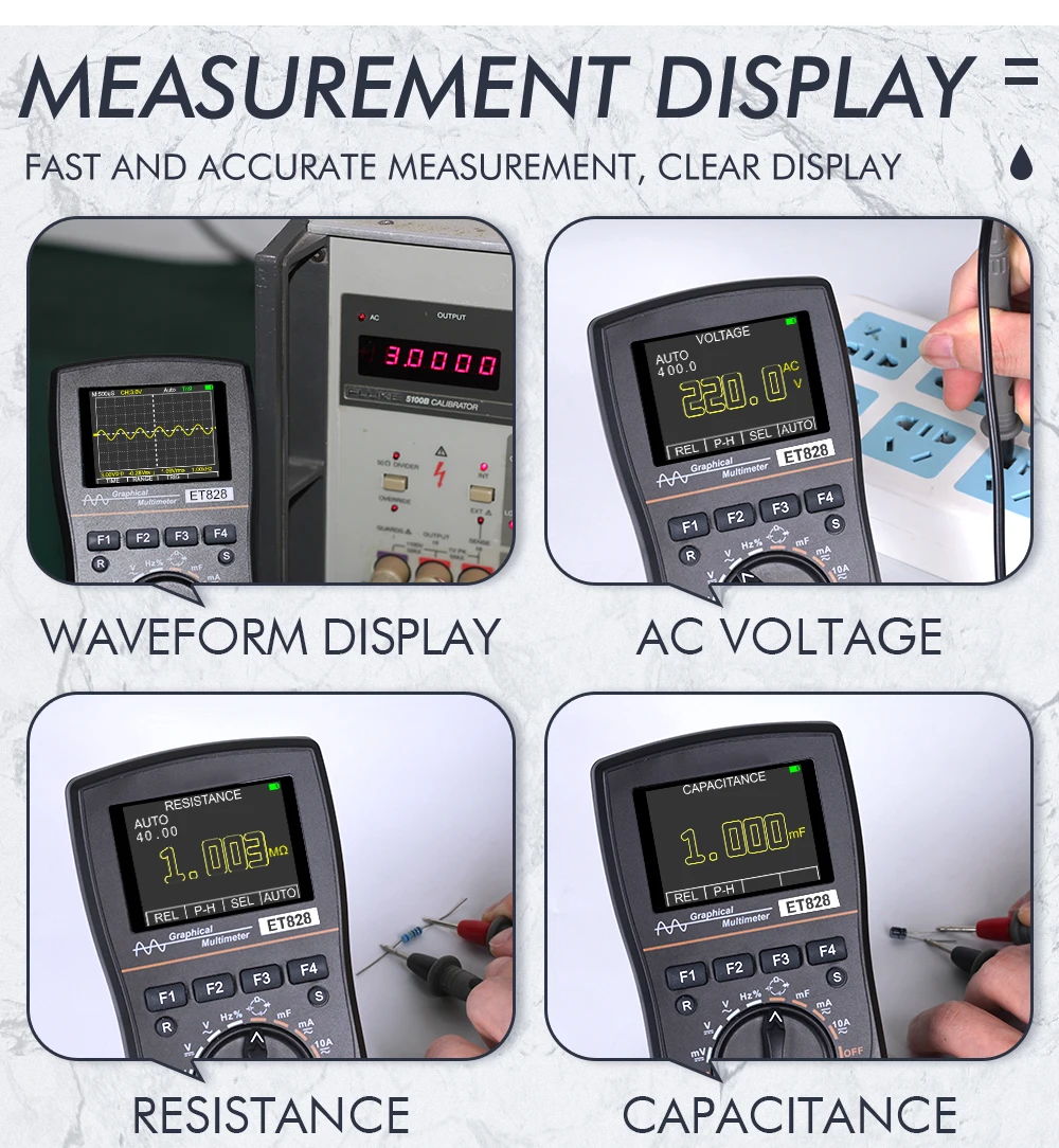 3.High voltage oscilloscope: In the oscilloscope state, it can measure up to 565V AC voltage, with peak to peak voltage reaching 1600Vp-p