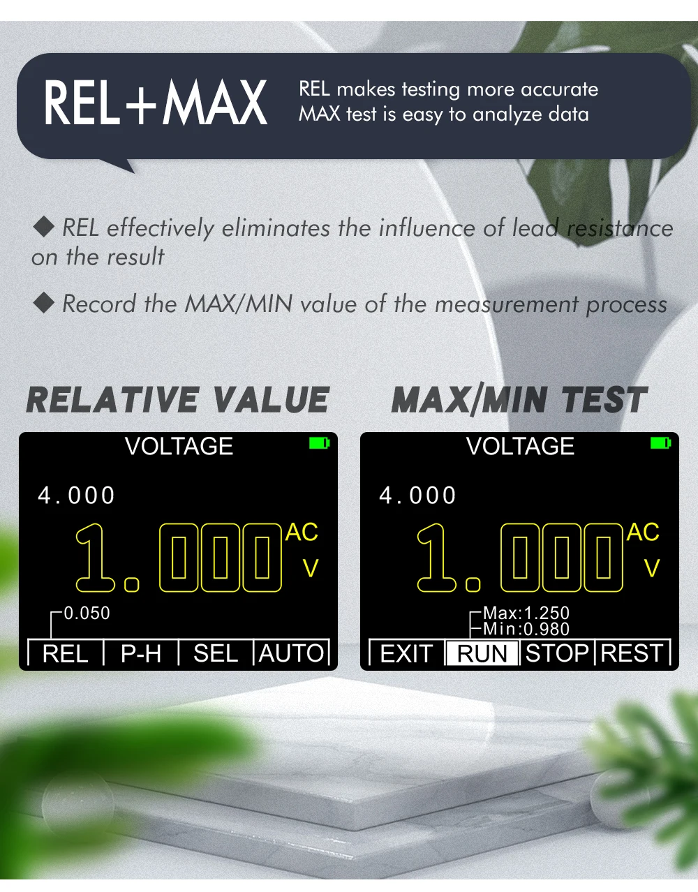 DC voltage 400mV,4V/40V/400/1000V ±(1.5% RDG + 10dgt)