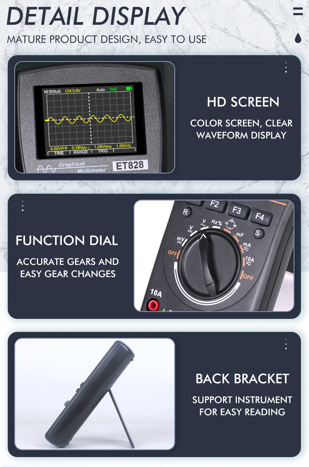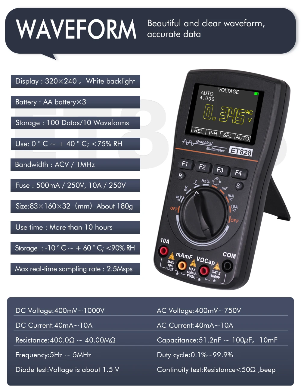 Color screen display: 2.4 inch color screen, clear waveform display
