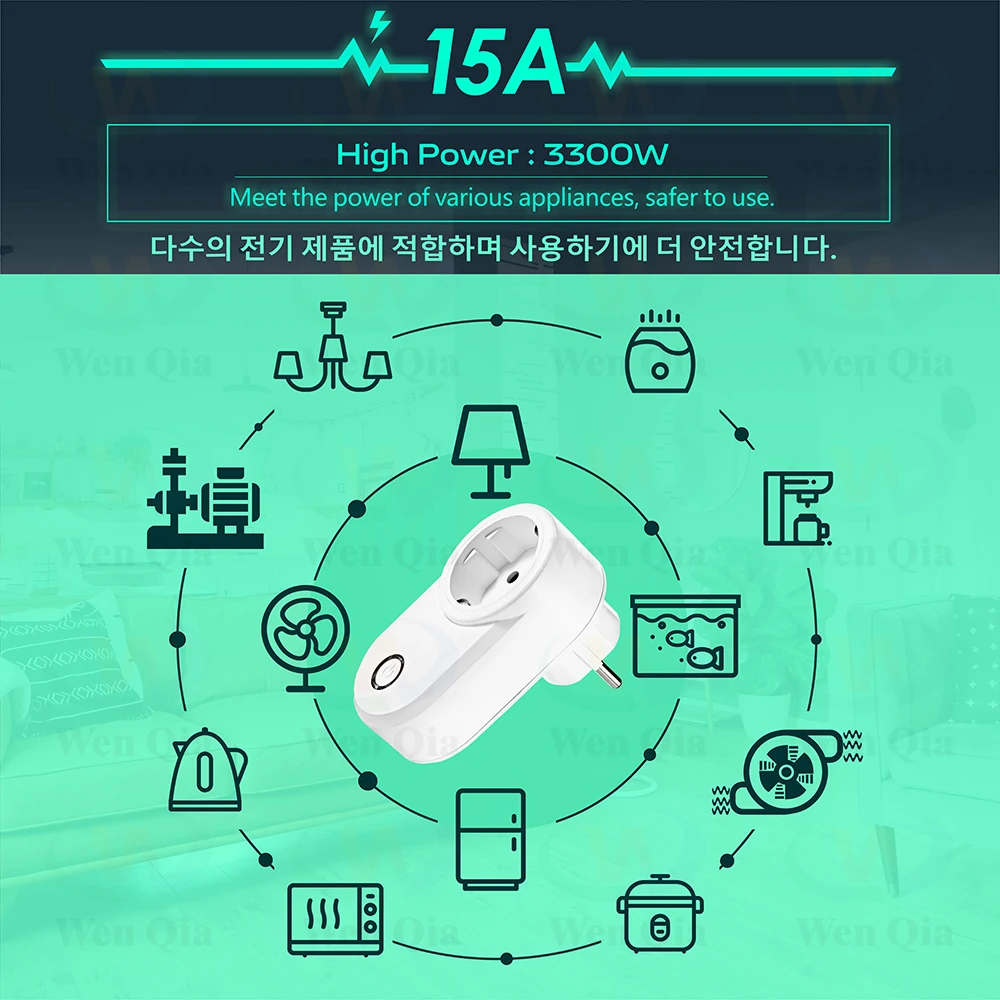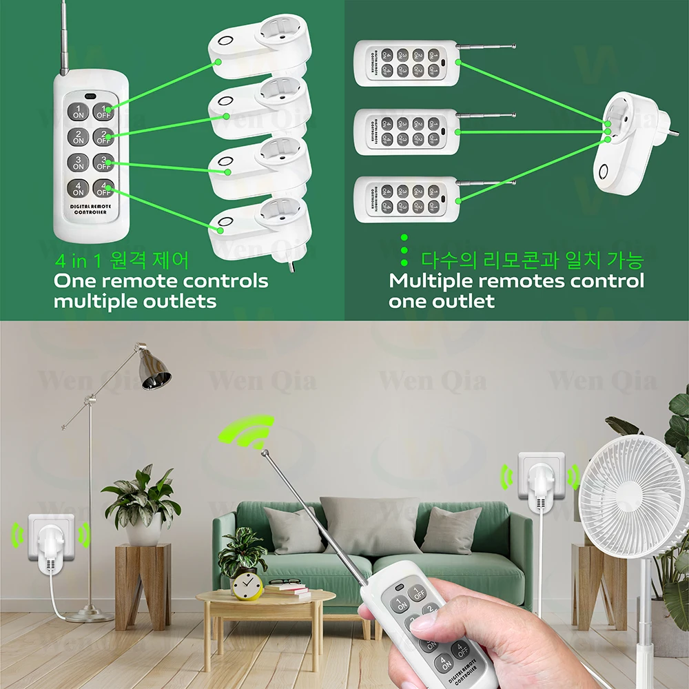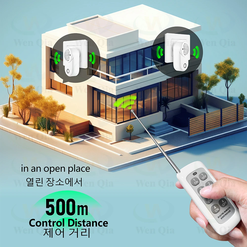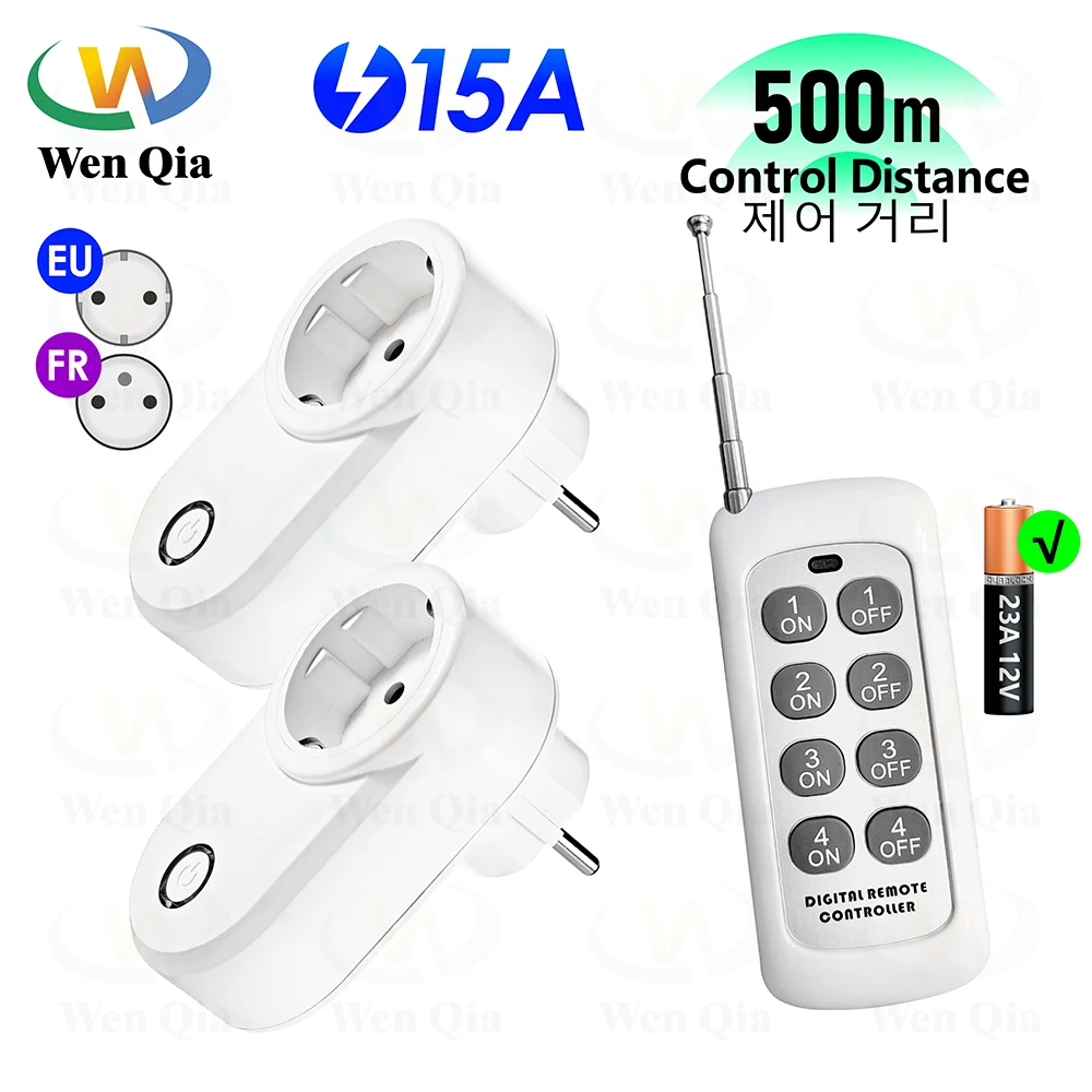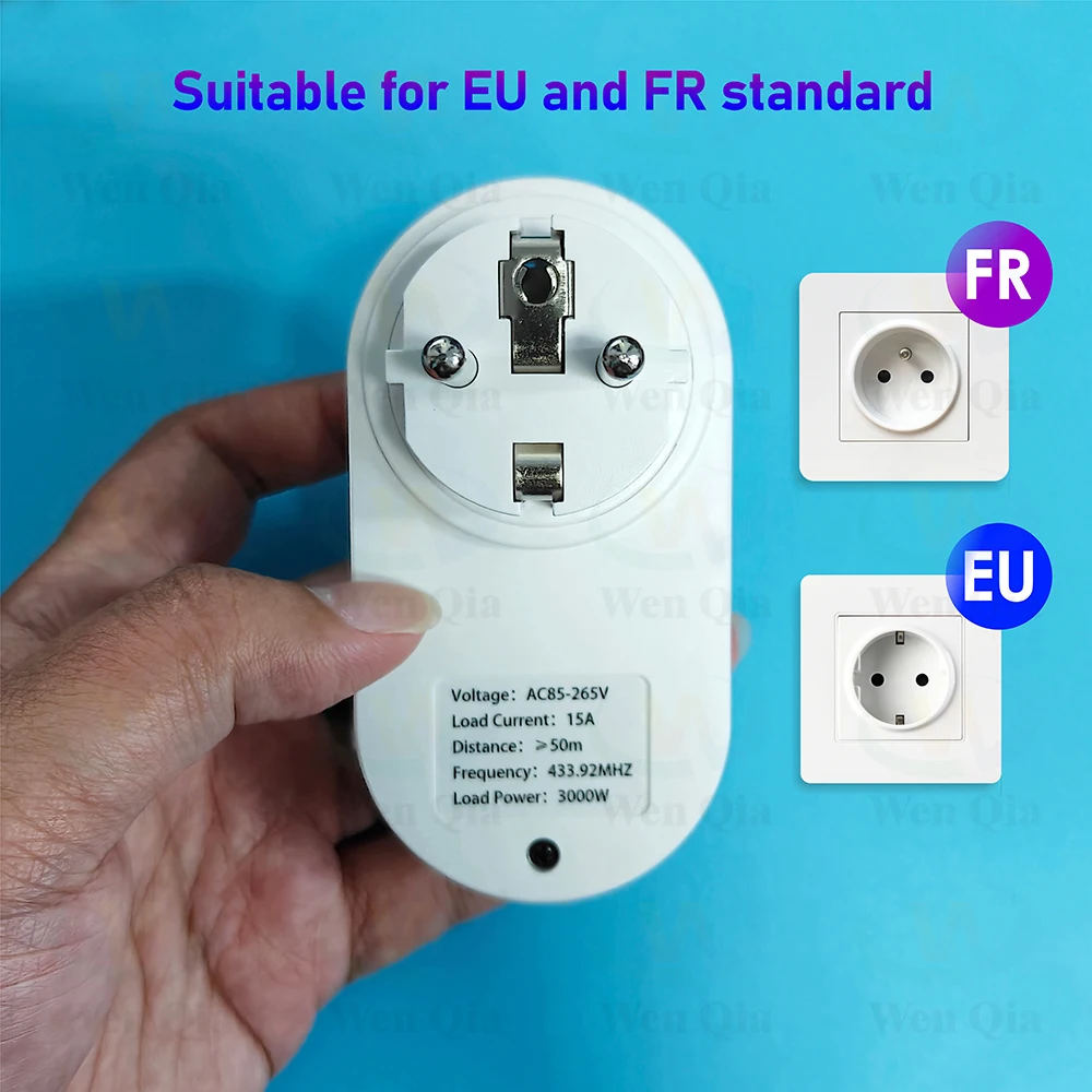 EU FR Wireless Remote Control Socket Smart Outlet,500m Transmitter,433Mhz 15A 220V Plug for Smart Home Light Fan Pump ON OFF
