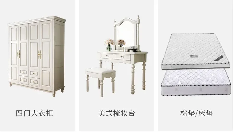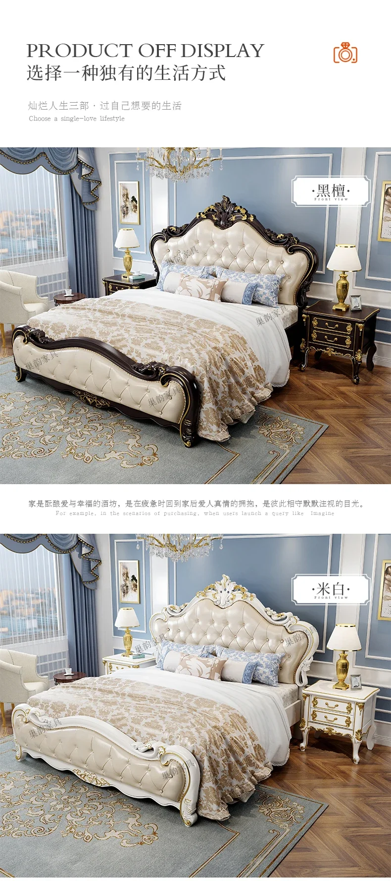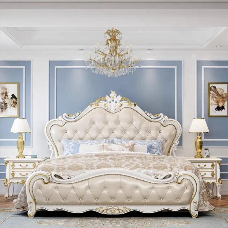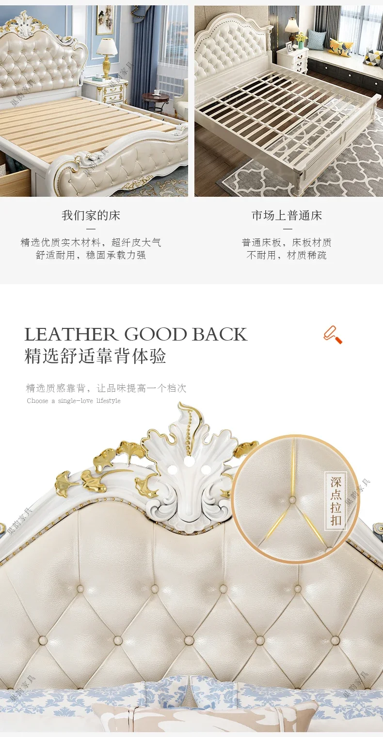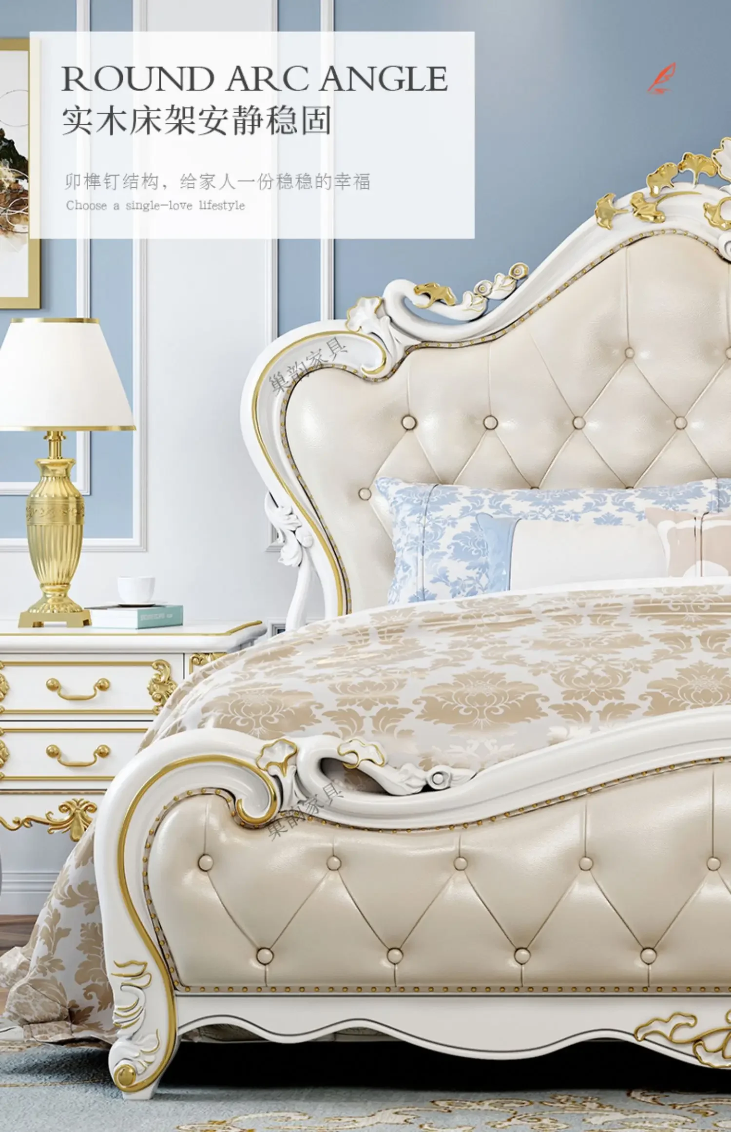 European Luxury Modern Double Bed Frame Mattress Storage Solid Wood Princess Bed Queen Size Cama Bedroom Set Furniture