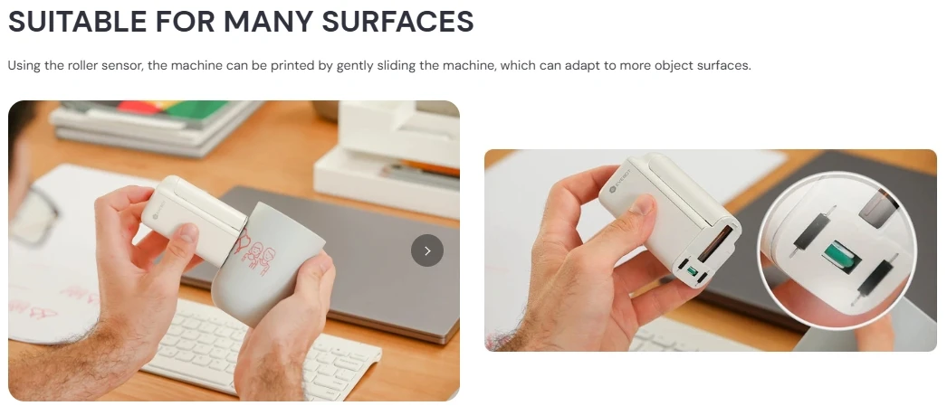 Suitable for many surfaces.Using the roller sensor, the machine can be printed by gently sliding the machine, which can adapt to more object surfaces.