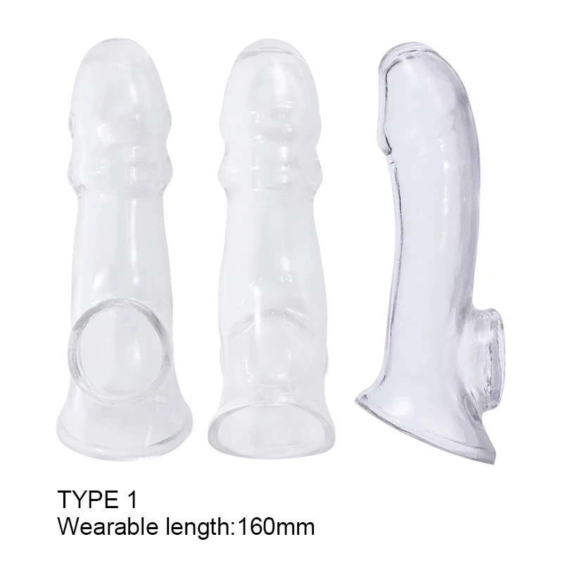 Extension Reusable Condom Penis Sleeve Male Enlargement Time Delay Dildo Enhancer Cock Rings Crystal Clear Condom Adult Sex Toys