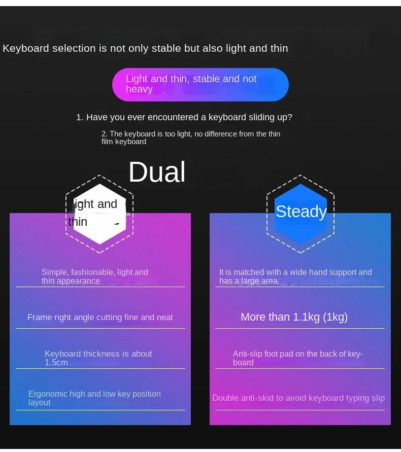 • Wired connection :This keyboard is connected via a wired USB interface, ensuring a stable and reliable connection that won't be affected by interference from other devices.