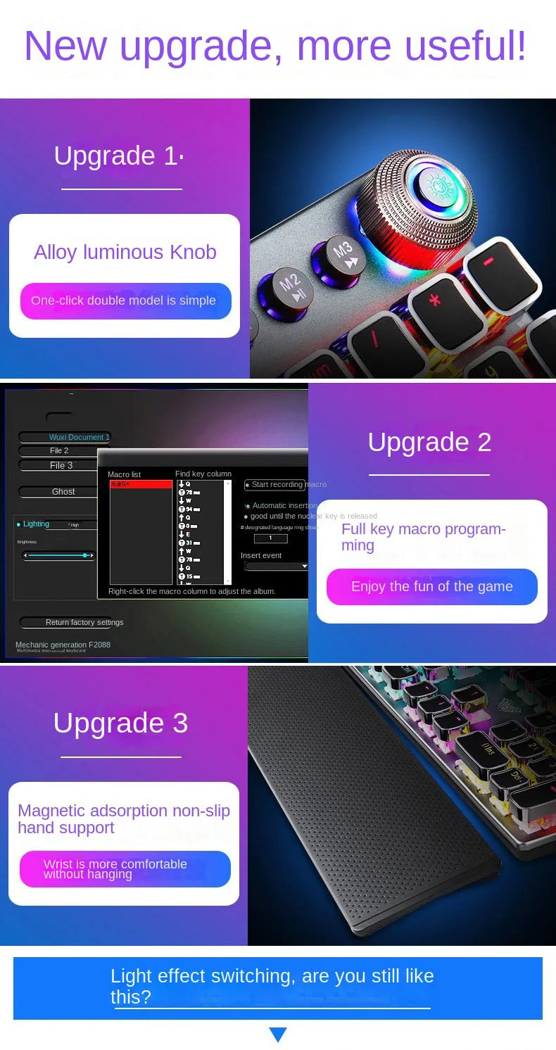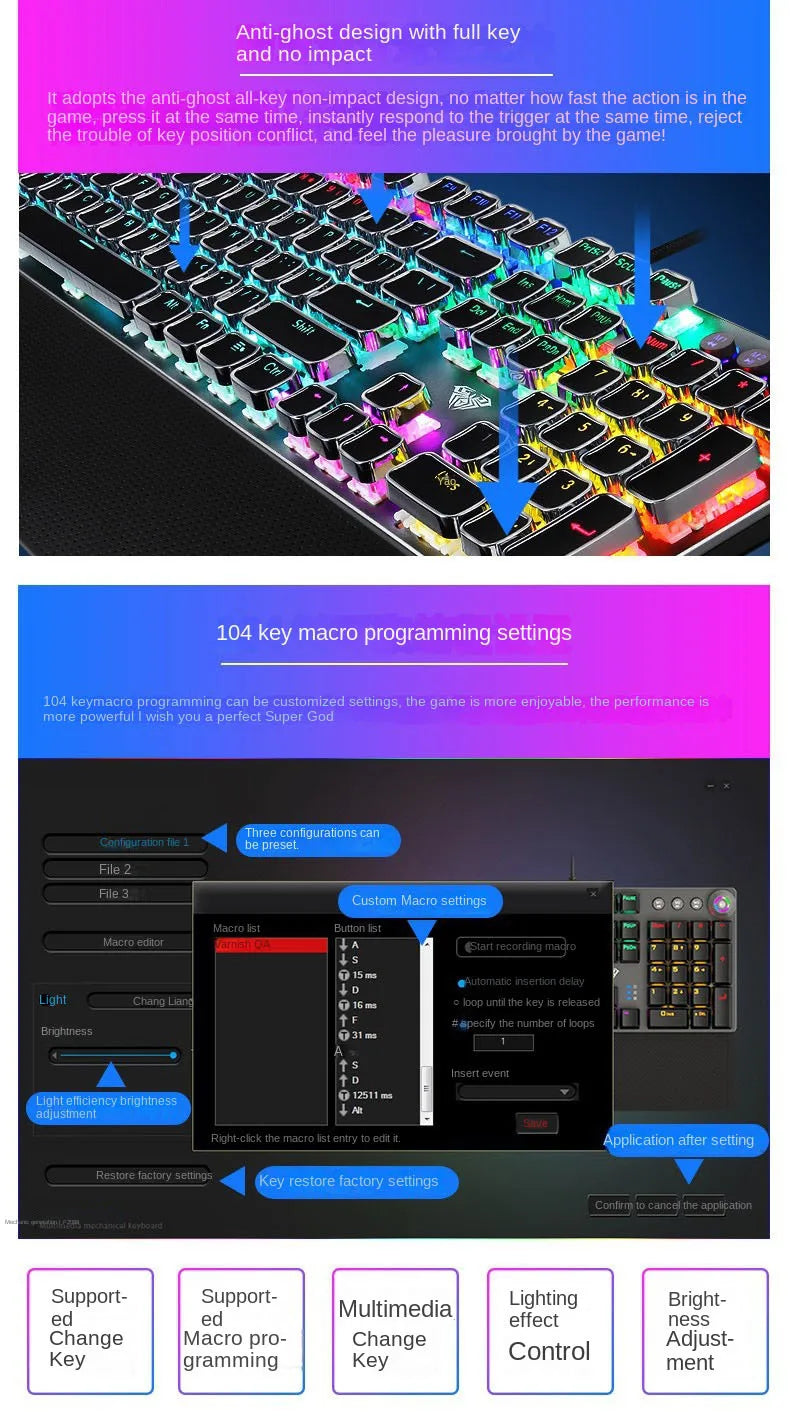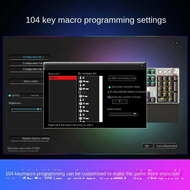 F2088 Mechanical Gaming Keyboard Anti-ghosting 104 Plating Blue Switch Wired Mixed Backlit Keyborad for Game Laptop PC