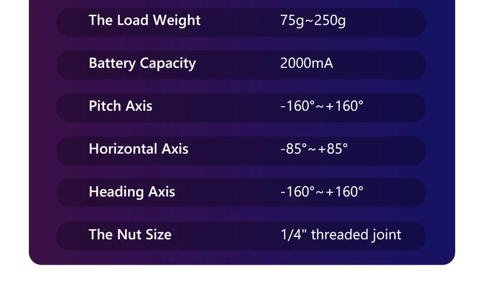 NOTE: This gimbal needs to adjust the balance when you use it for the first time. Please contact us if you don't know how to adjust the balance.