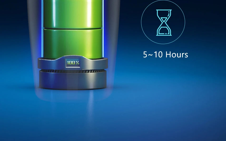 F8 built-in 2200mah Li-battery. it runs up to 5-10 hours.
