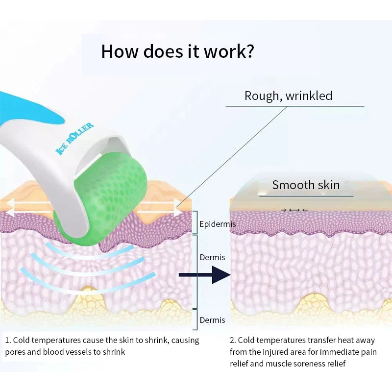 • Anti-wrinkles :The ice roller massager helps to reduce the appearance of fine lines and wrinkles, leaving the skin looking smoother and more radiant.