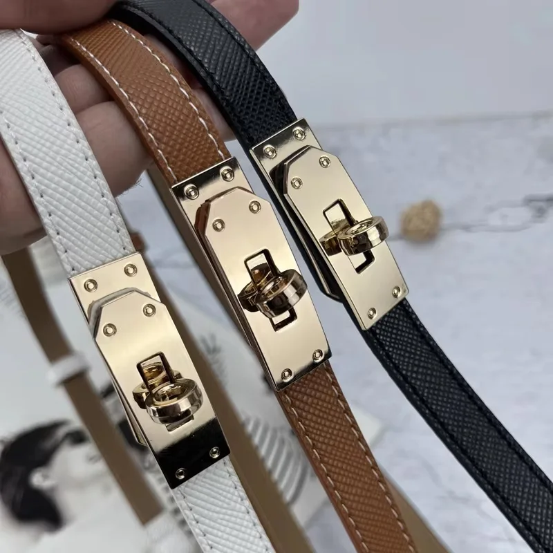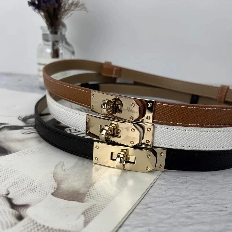 Fashion Adjustable Thin Belt Luxury Black PU Leather Female Designer Girdle Korean Corset Metal Buckle Belts For Women White