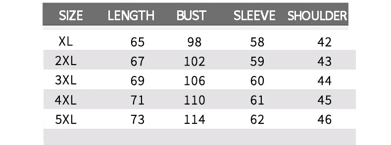 size_info: {"sizeInfoList":[{"length":{"cm":"98","inch":"38.58"},"size":"XL","vid":-1},{"length":{"cm":"102","inch":"40.16"},"size":"XXL","vid":-2},{"length":{"cm":"106","inch":"41.73"},"size":"XXXL","vid":-3},{"length":{"cm":"110","inch":"43.31"},"size":"4XL","vid":-4},{"length":{"cm":"114","inch":"44.88"},"size":"5XL","vid":-5}]}