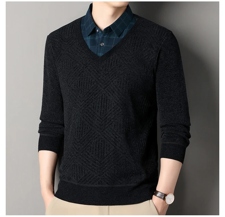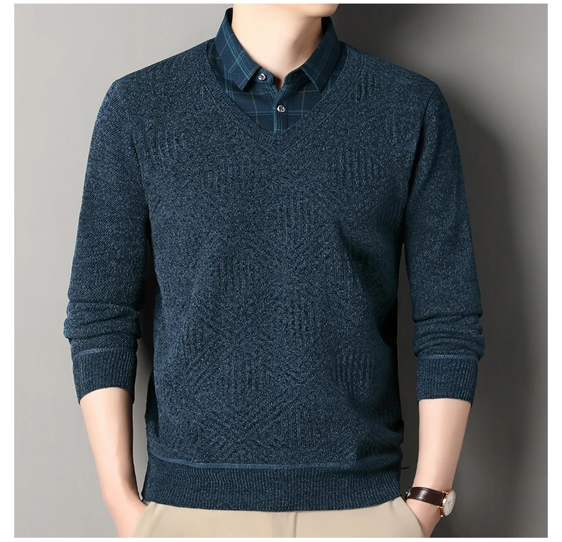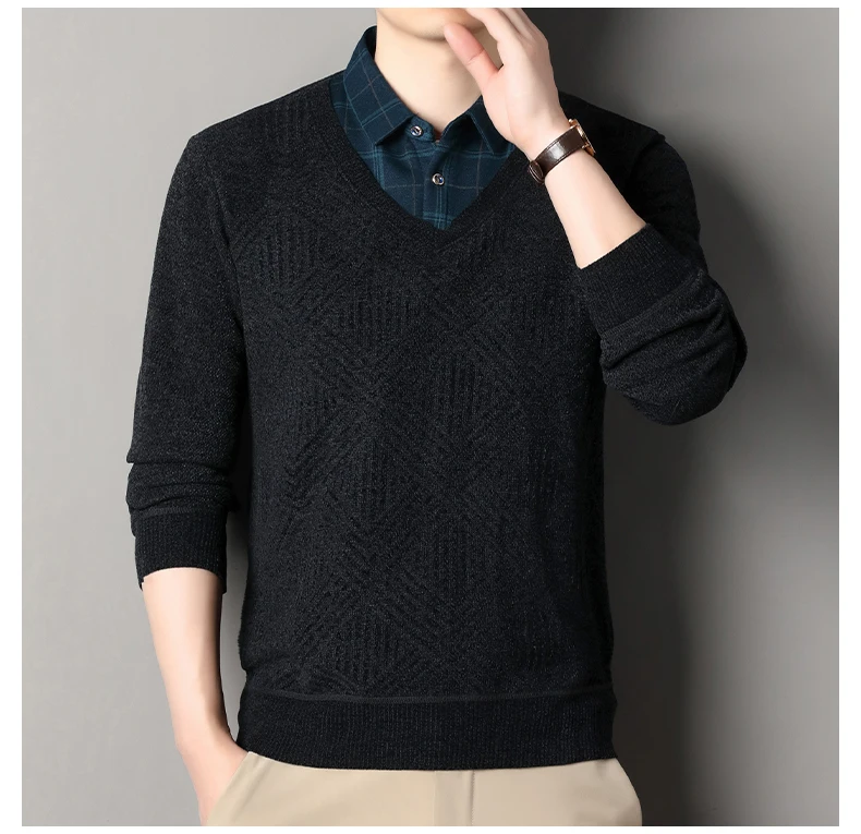 Fashion Thick Fleece Sweater Men's Knitting Pullover Men Winter Autumn Clothing Polo Neck Thickened Warm Pullovers