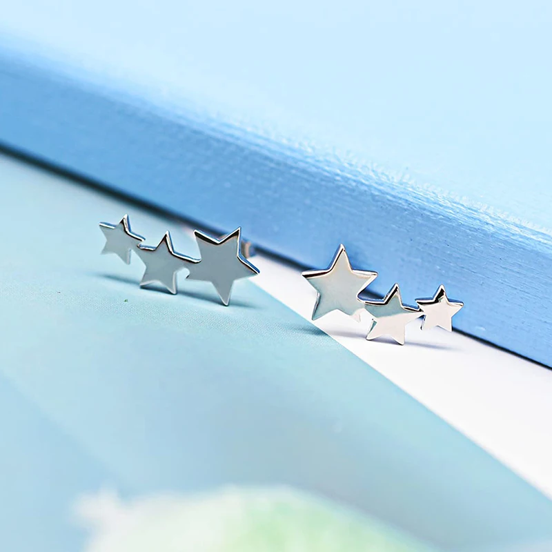 Fashion Three Stars Connecting Earrings Silver Plated Stainless Steel Earrings For Women
