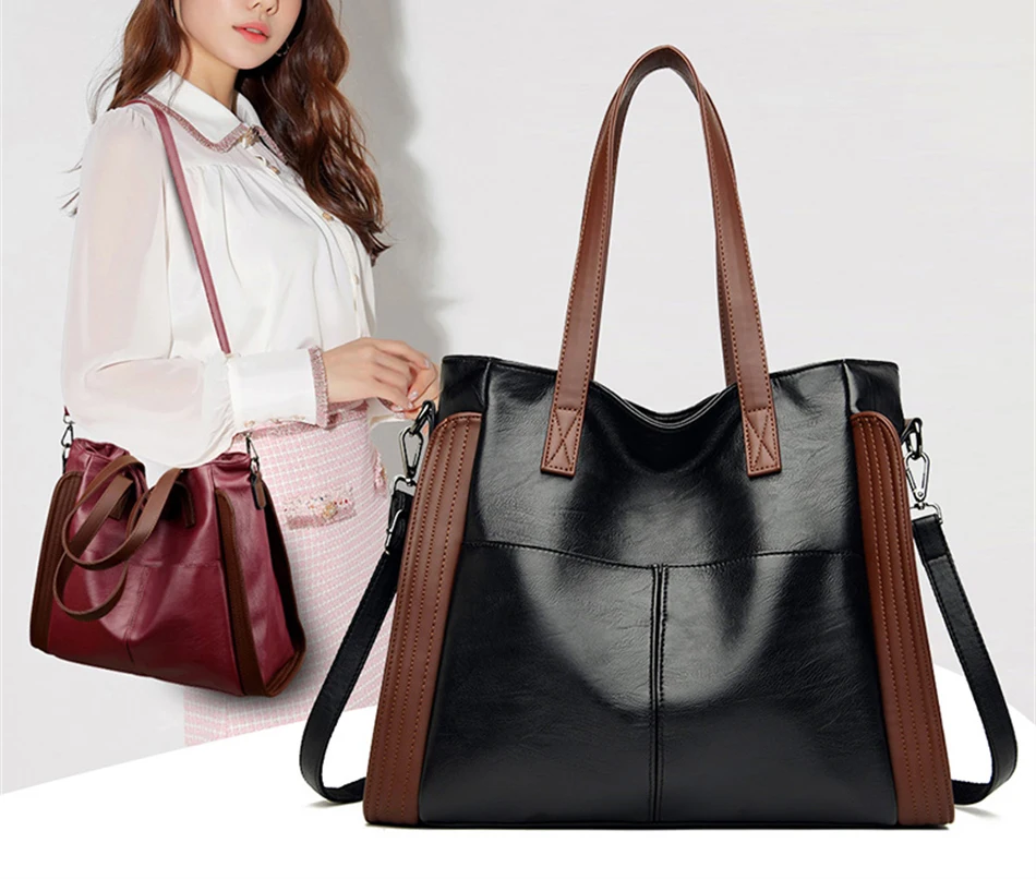 Fashion Women Handle Bag Vintage PU Leather Crossbody Tote Bag Female Luxury Handbag Large Capacity Shoulder Bag for Women