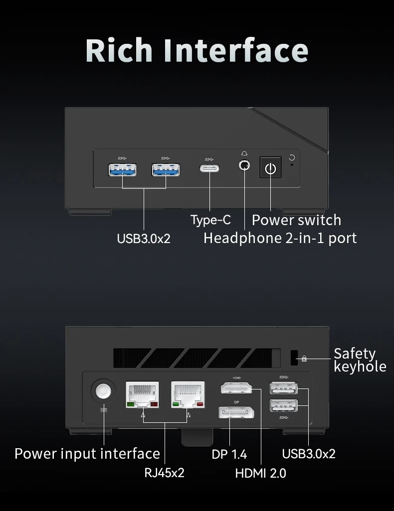 • HDMI and RJ45 Ports :Featuring HDMI and RJ45 ports, this mini PC supports high-definition video output and wired internet connection.