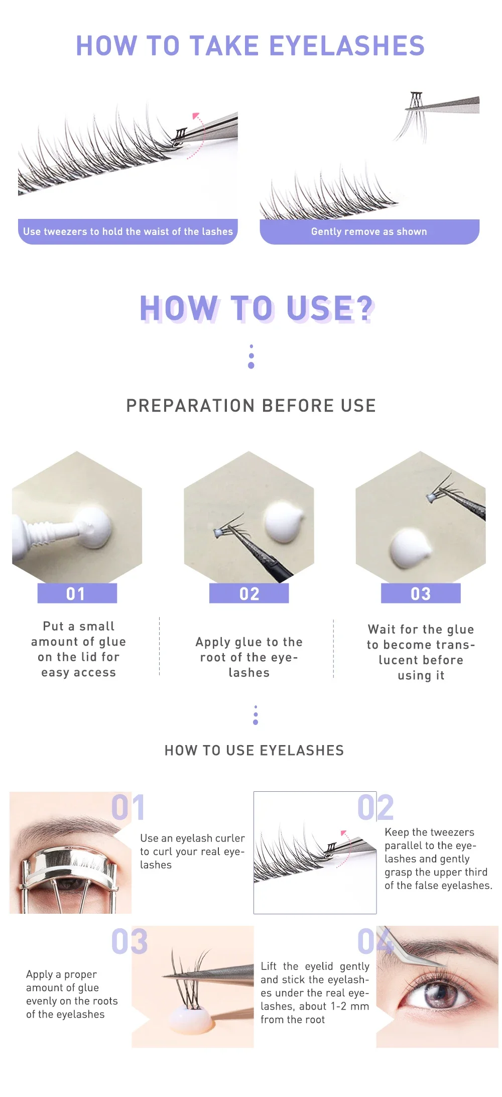 Fish Tail Cluster Eyelash A/M Shape Spikes Lashes Individual Dovetail Makeup Extension Wispy Premade Fans Natural Fluffy 3Rows