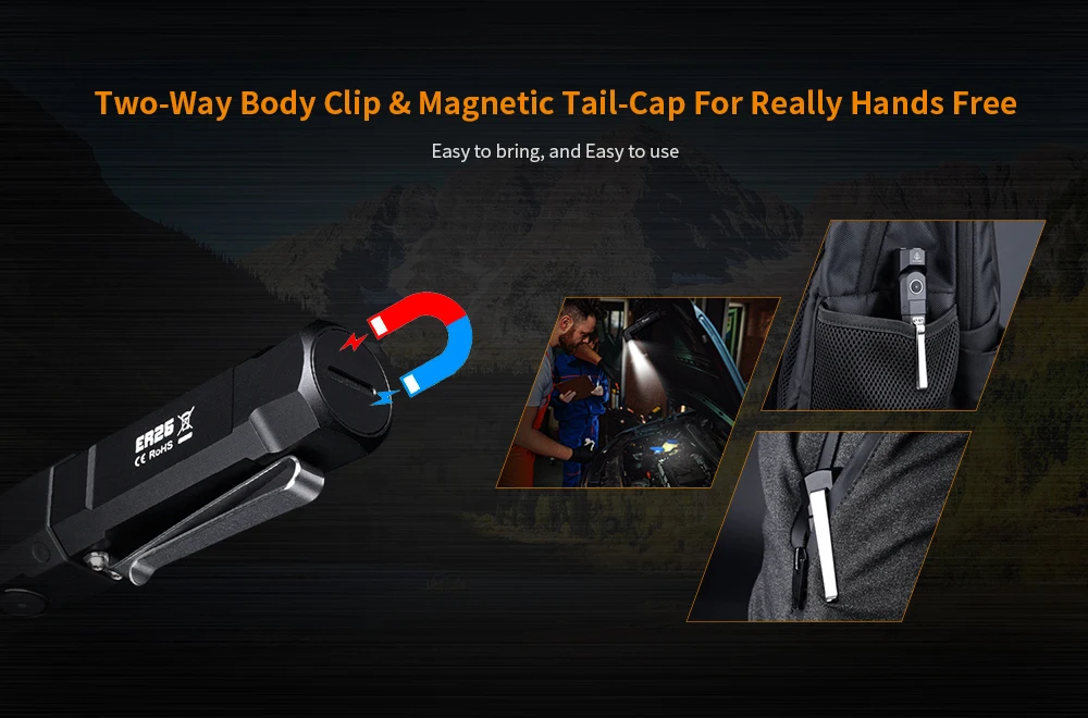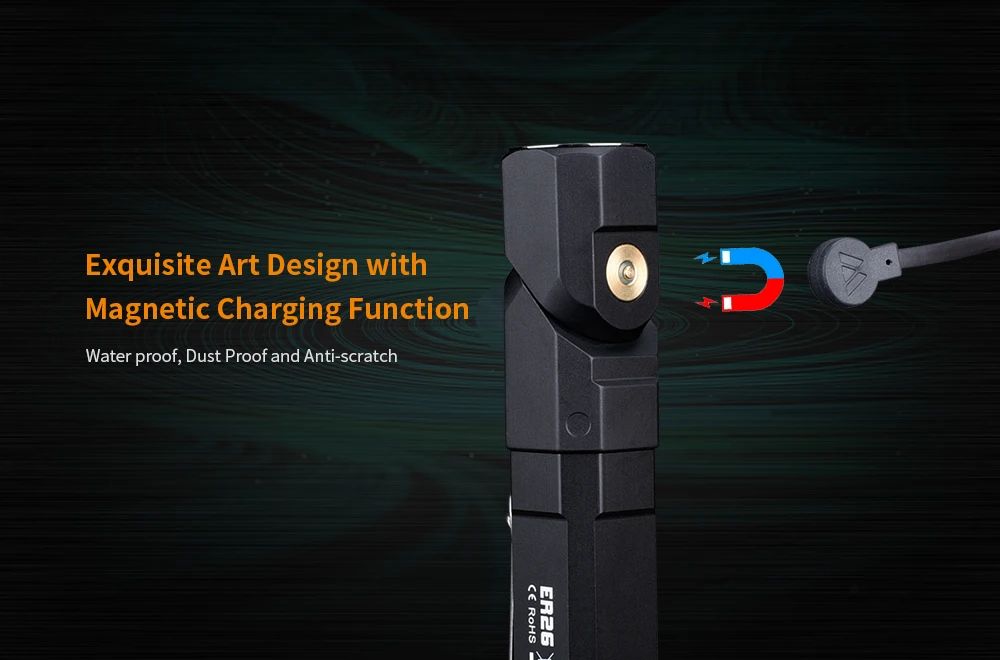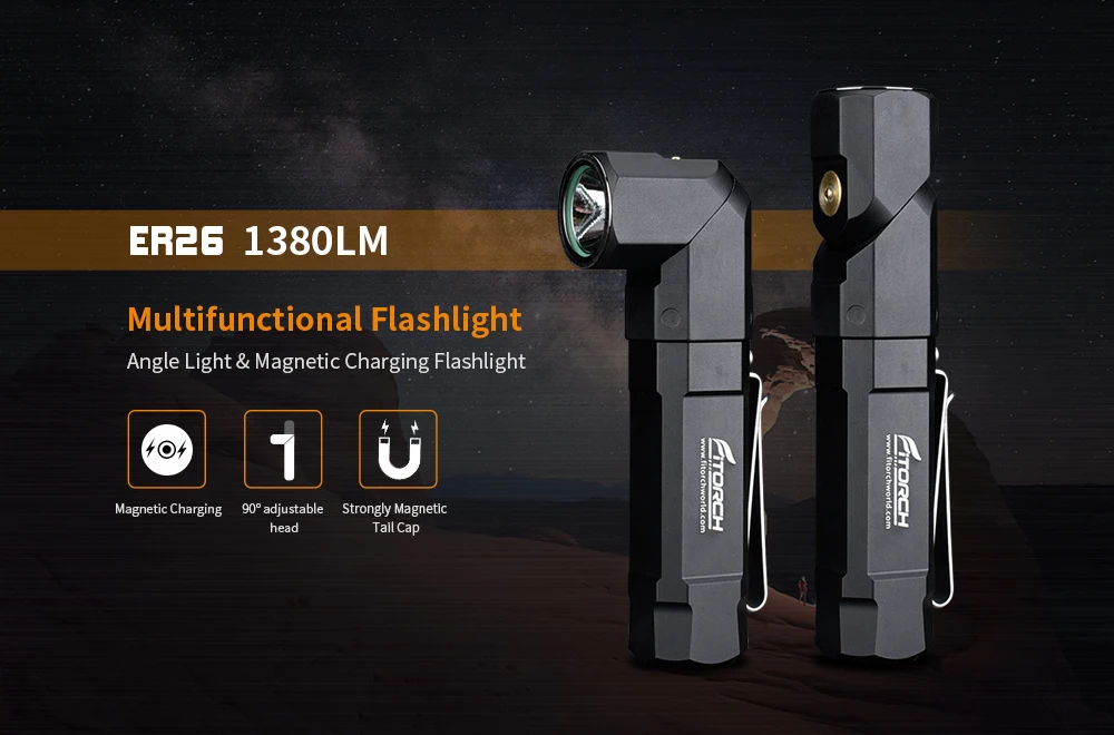 Fitorch ER26 Rechargeable LED Flashlight Versatile Torch 90° Adjustable Head Magnetic Charging Flash Light Camping Hand Lamp