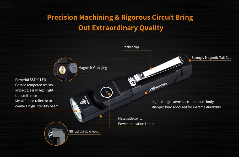 • Magnetic Charging :This flashlight features a magnetic charging system, making it convenient and easy to power up. No need for traditional batteries, this feature ensures your light is always ready when you need it.