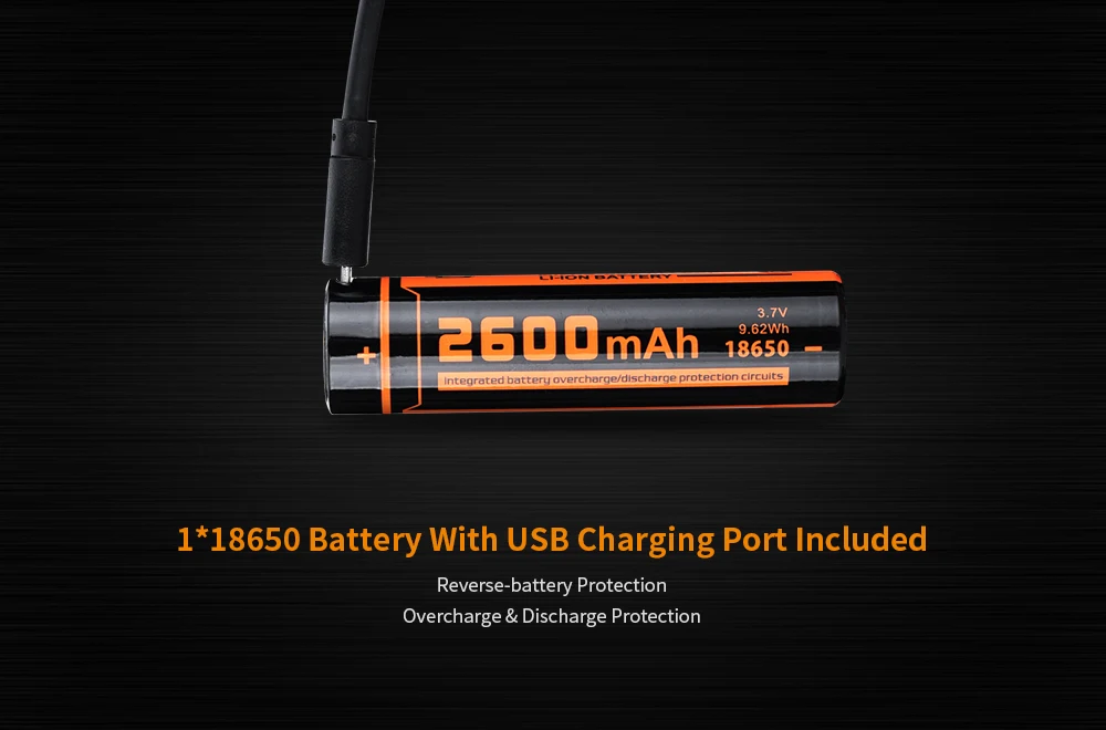 Battery life: depending on brightness,1380lm/1.5h 500lm/4.5h 30lm/65h 1.5lm/600h
