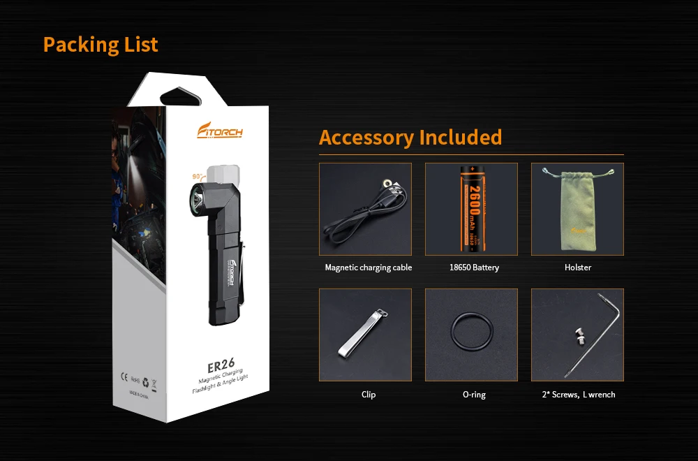• Versatile LED Flashlight :The Fitorch ER26 rechargeable LED flashlight is a versatile torch, perfect for camping, hiking, or any outdoor activity. Its adjustable head allows for focused lighting, enhancing visibility in dark areas.