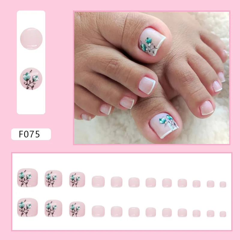 Flash Pile Drill Press on Nails Fake Nails Tips with Sticker False Toenail Design Butterfly Lovely Girl False Toenail