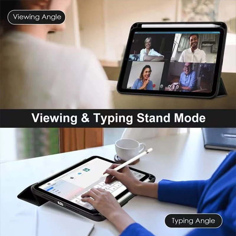 Flip Tablet Cover For iPad Mini 6 8.3'' 2021/Mini 7 2024 (A17 Pro) A2995 Acylic Back Case With Pencil Holder Auto Wake up /Sleep