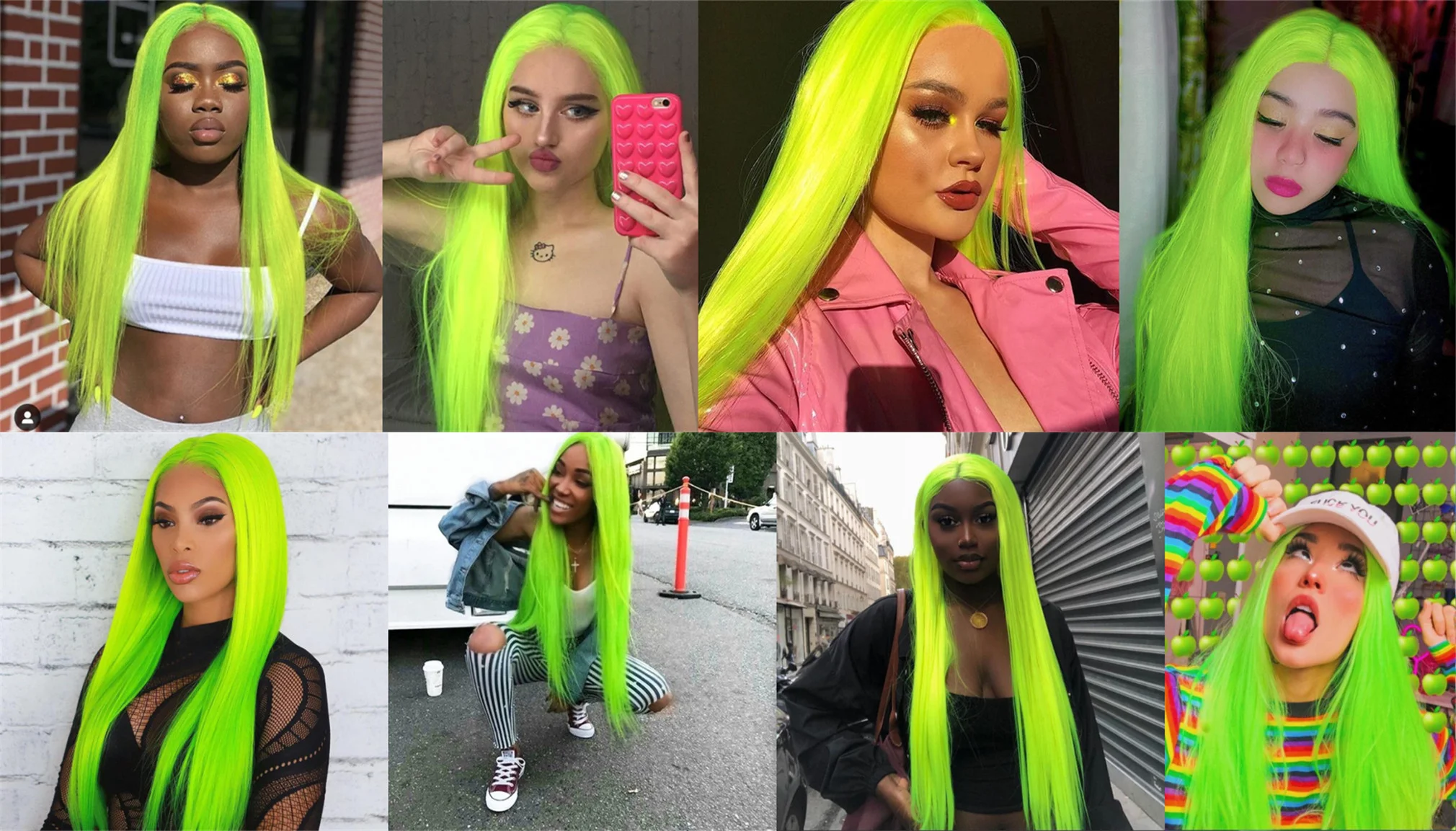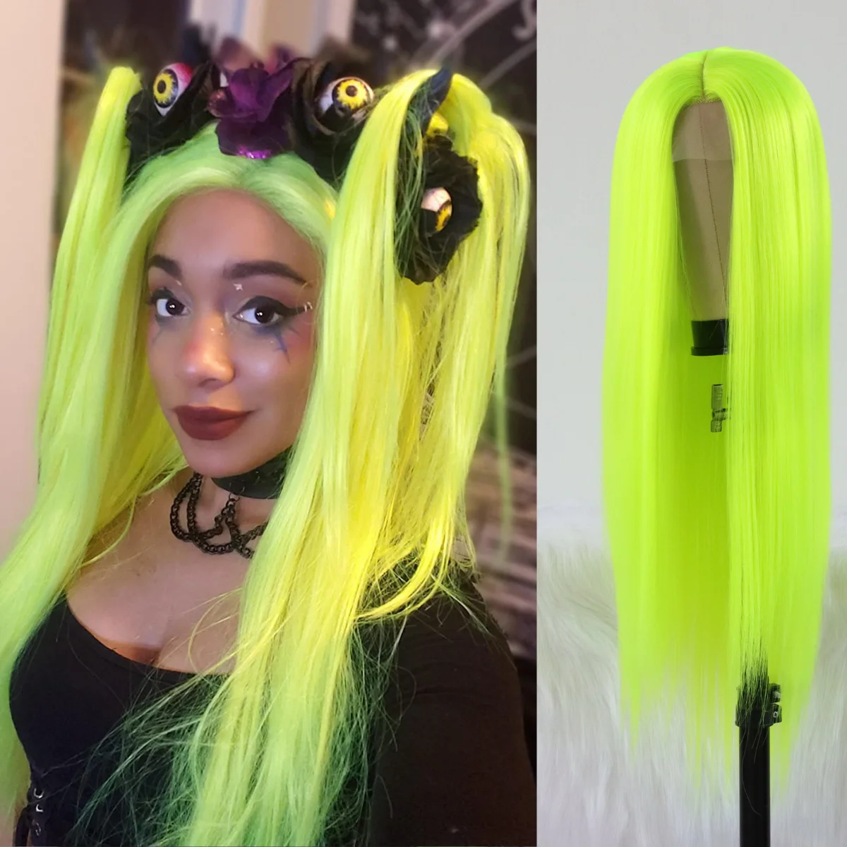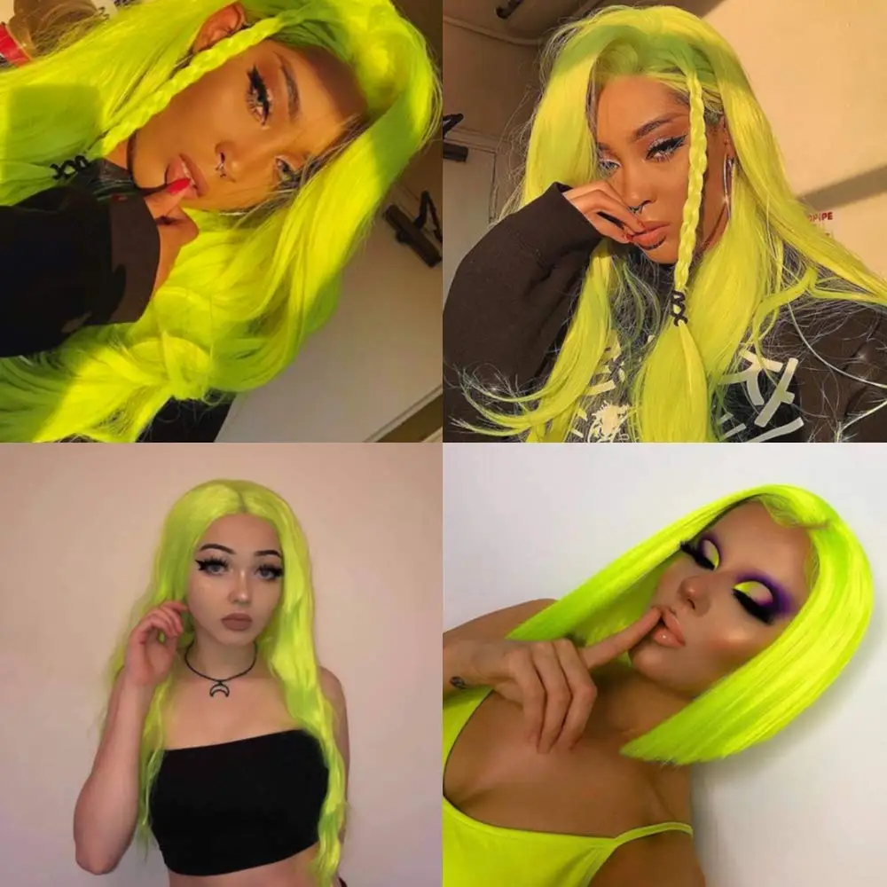 Vibrant Fluorescent Green Color: Our wigs for women are designed in a stunning neon green shade, adding a pop of color to any look. Stand out from the crowd and turn heads with this eye-catching hue.