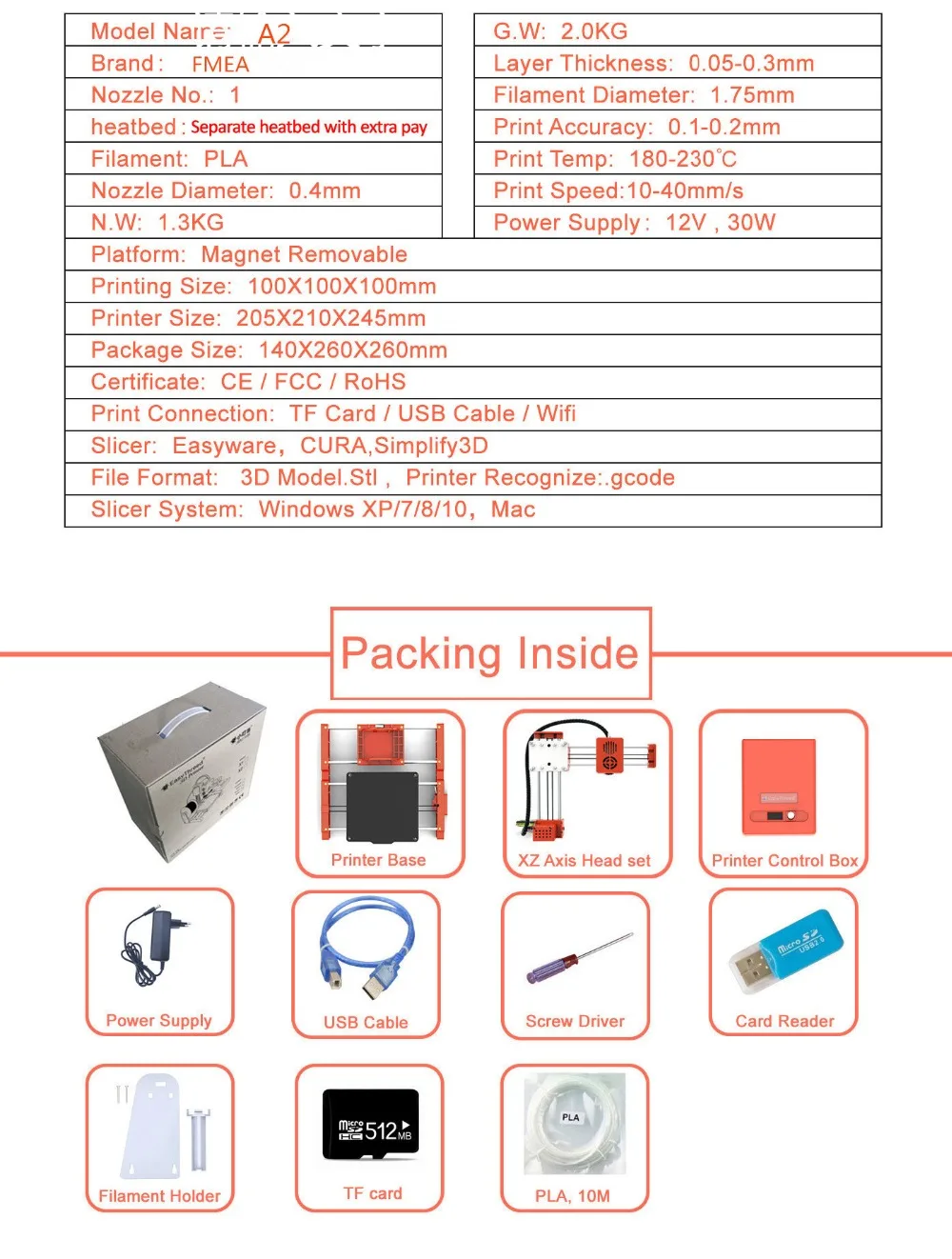 Printing Speed: 10-40mm/s