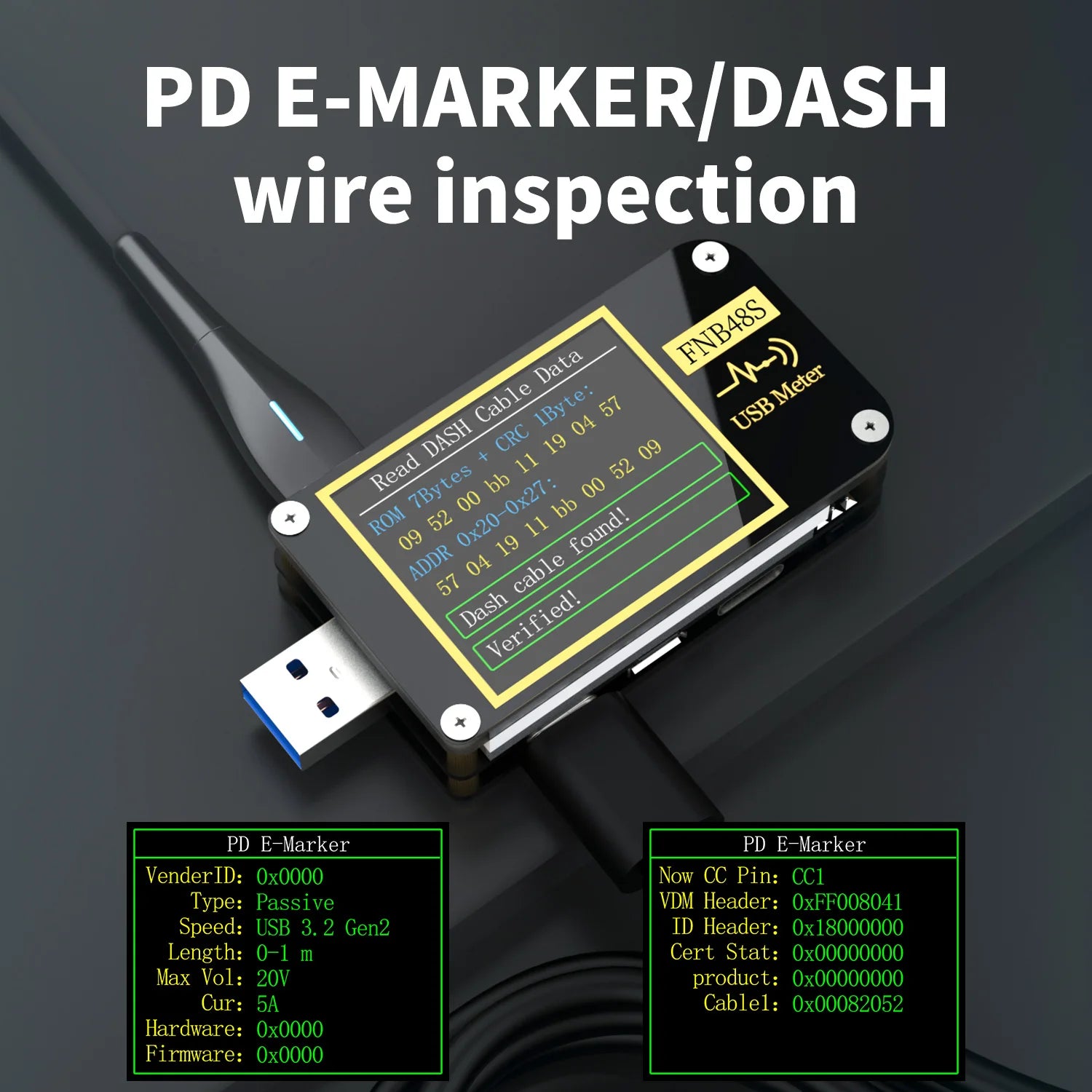 This product support read the data of E-Marker and DASH cable, and the chips of e-marker and DASH cables can be easily read after connecting the data lines.