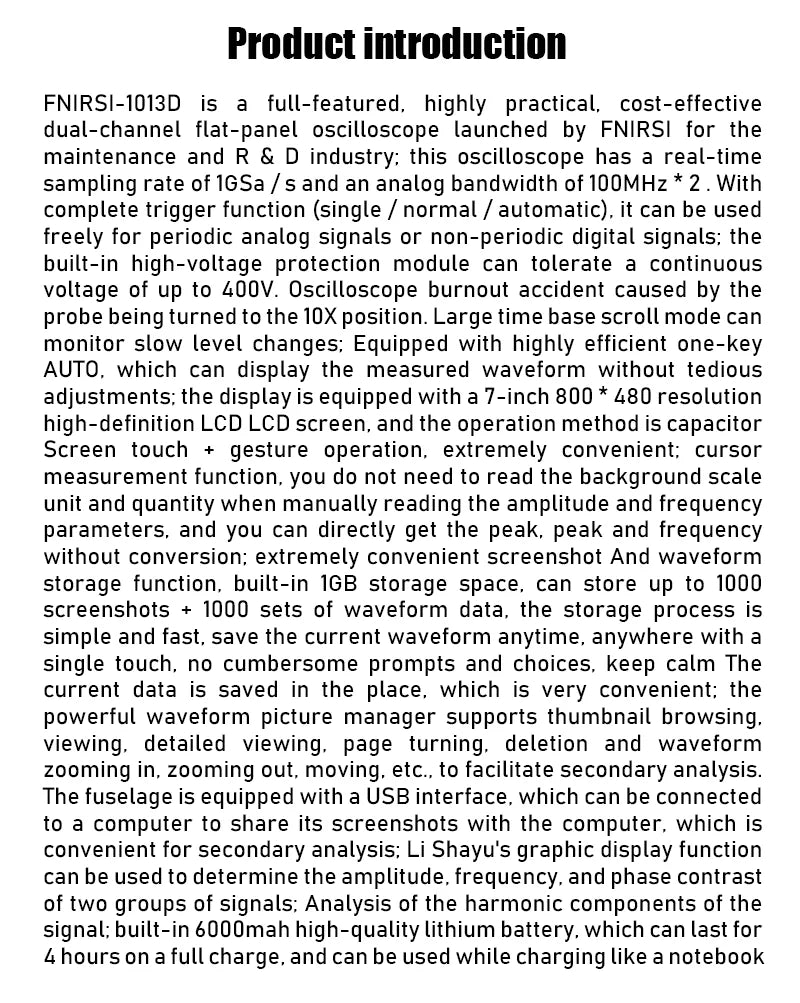 FNIRSI-1013D Digital Tablet Oscilloscope Dual Channel 100M Bandwidth 1GS Sampling Rate 7 Inches Mini Tablet Digital Oscilloscope