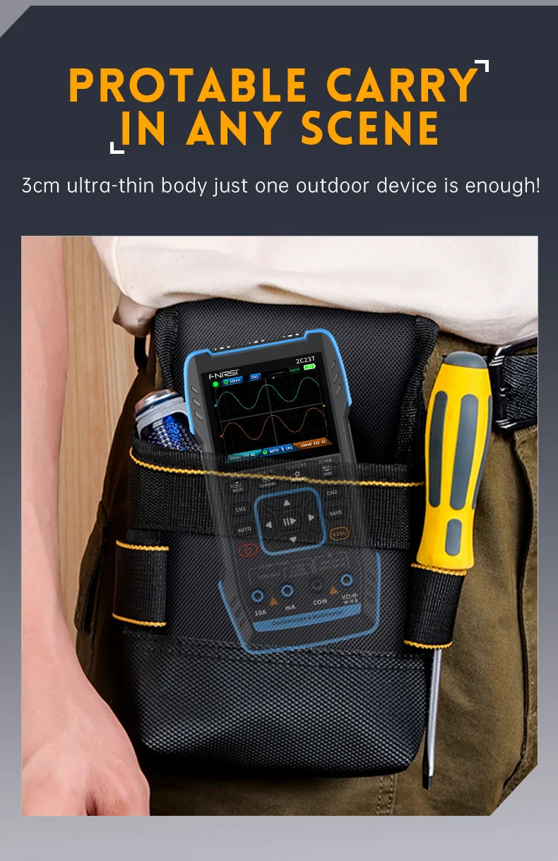 FNIRSI 2C23T 3IN1 Dual Channel Digital Oscilloscope Multimeter + Function Signal Generator 10MHZ*2 50MS/s AC DC 1000V 10A T-RMS