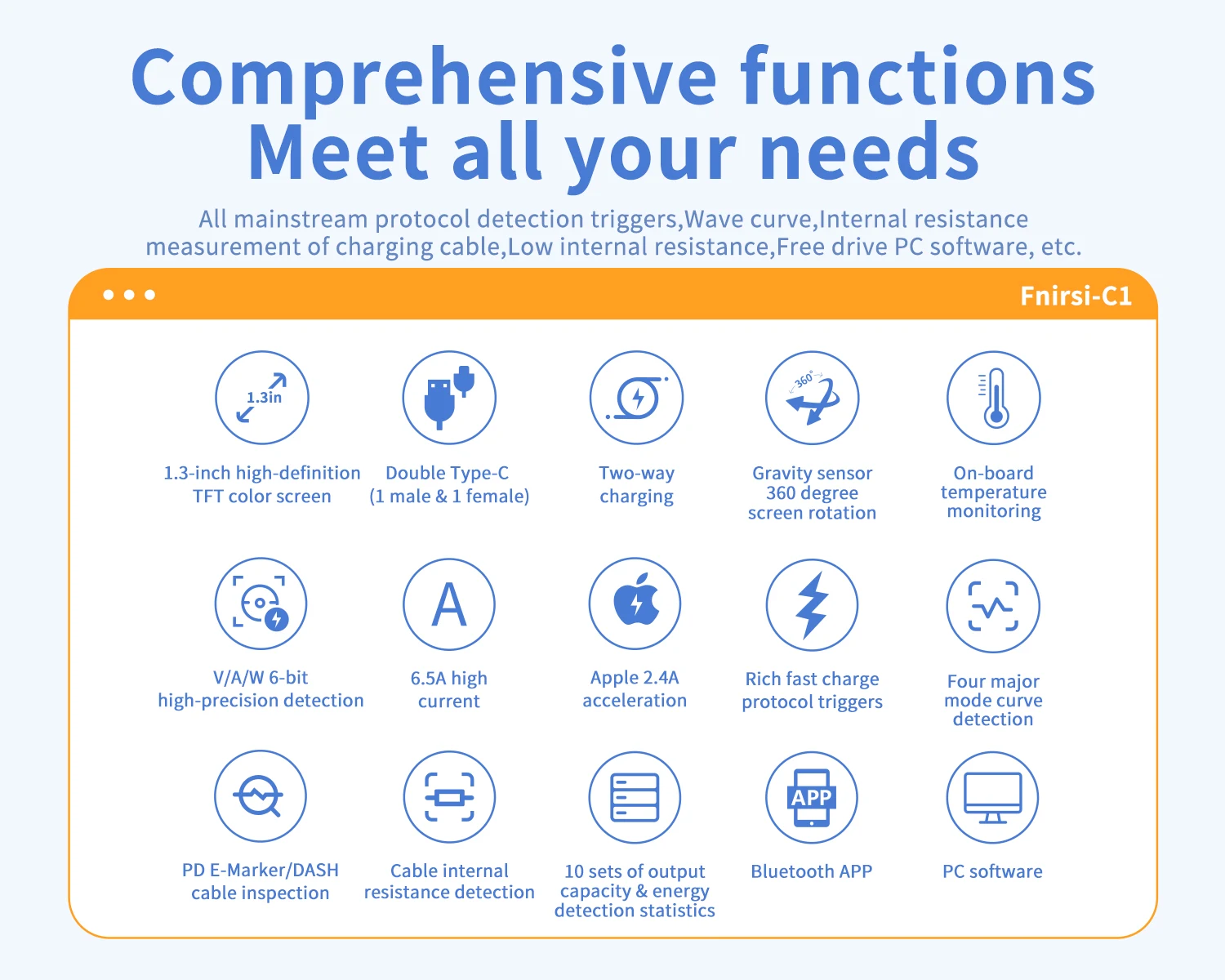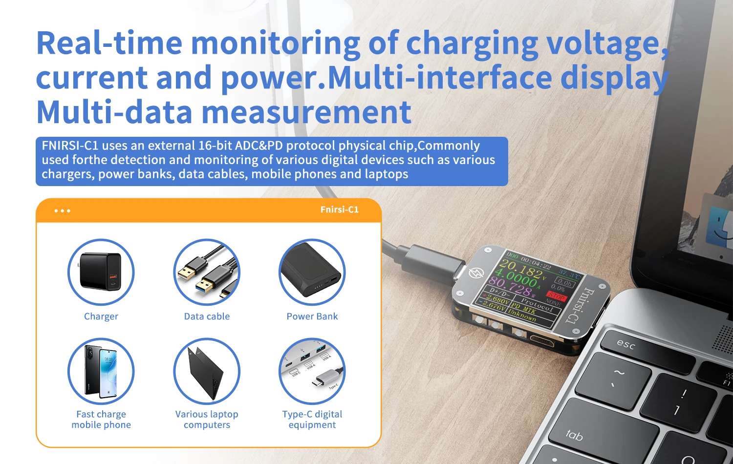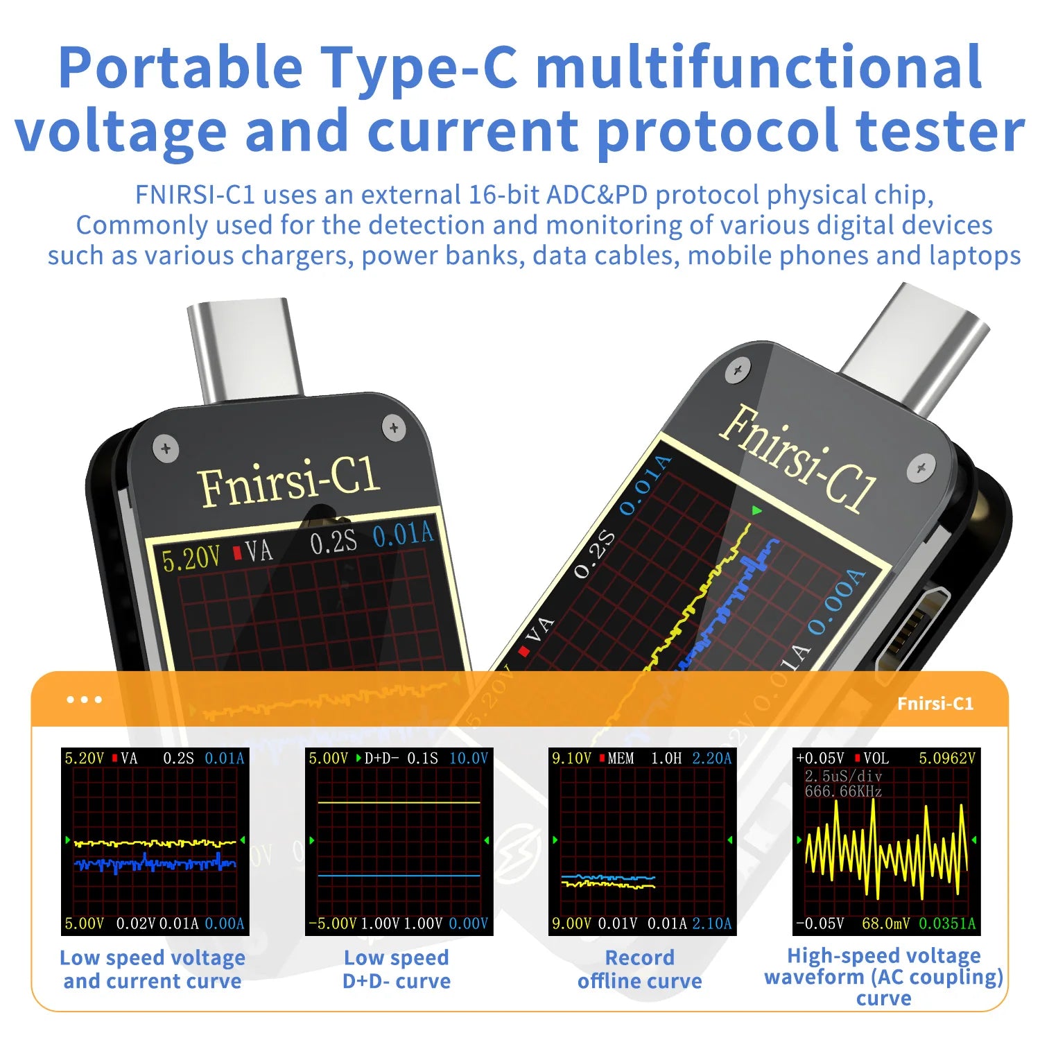 FNIRSI-C1 Type-C PD Trigger USB-C Voltmeter Ammeter Fast Charging Protocol Test Type-C Meter Power Bank tester With PC Software