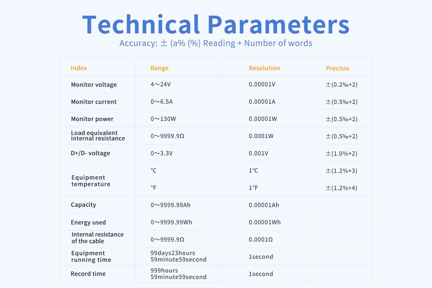 Load equivalent resistance accuracy: ±(0.5‰+2)
